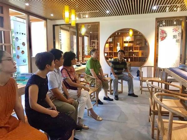 副院长沈军甫在参观过程中,对文化管理系在长达一年多的实践基地筹备过程中所付出的努力表示肯定,希望以实践基地为载体,秉承“传承非遗 创新非遗”的理念,让深厚的传统文化底蕴再现光彩。文化管理系首席专家陈子达教授表示,实践基地的启用让文化管理系的教学真正地与实践结合起来,走在了行业前沿,对于培育专业人才、服务文化产业体系起到了积极的促进作用。现场,文化管理系学生向来宾们展示了染色剪纸流程,娴熟的手工技艺获得观摩者的一致赞赏。