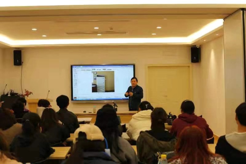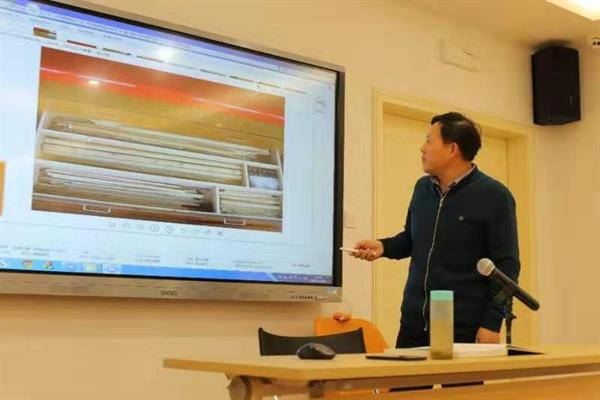 1218日下午,文化管理系邀请我校特聘教授、中国丝绸博物馆陈列保管部主任、中国纺织品鉴定保护中心副主任汪自强老师,为19级文物修复的学生们作《<图说中国传统手工书画装裱>解析》专题讲座。