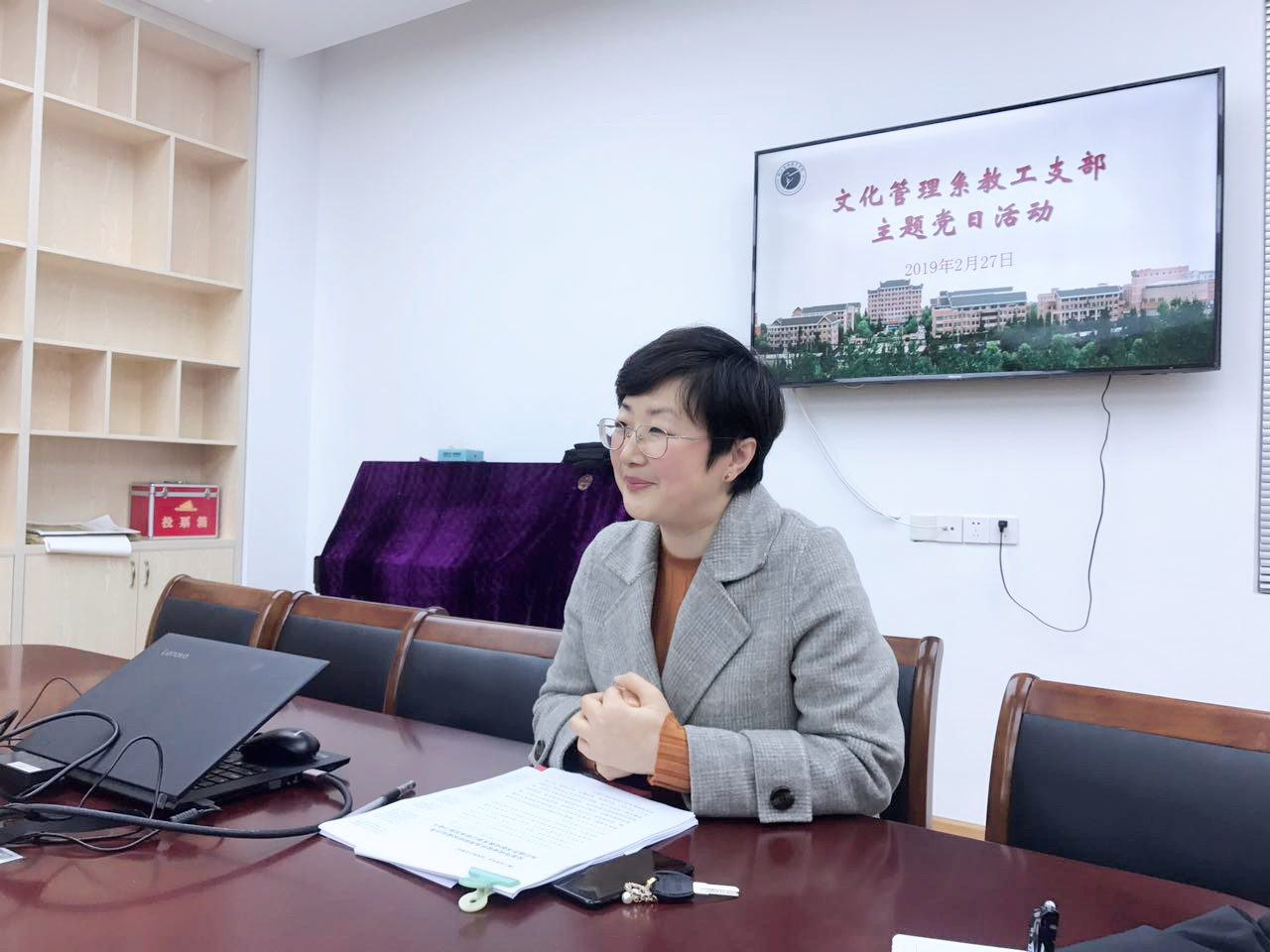 2月27日下午,文化管理系党总支围绕学校第二次党代会精神在13501会议室召开主题党日活动。文管系全体教师党员参加活动,活动由系教工支部书记李卉主持。