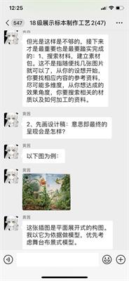 展示艺术设计专业核心课程有博物馆展示设计、平面设计基础与应用、展览展示制作、展示标本制作工艺、博物馆场景制作等。任课教师们采用微信平台线上分组教学,点对点施教,开发学生创作思路,激发学生创作灵感。展示标本制作工艺2课程通过教师提供图片资料给学生拓宽思路,区分现实与虚拟场景,学生自由选择主题举例,教师逐个线上点评,课后布置作业完成首次课程。