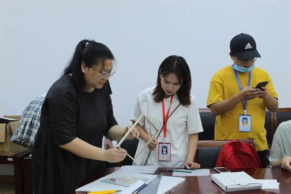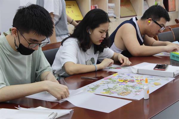 文化管理系展示艺术设计教研室黄茜老师对在场体验的师生进行一对一指导和示范,鼓励同学们发挥自己的想象力,大胆创新,用自己的奇思妙想将一个个植物标本拼贴成一幅独具特色的画。