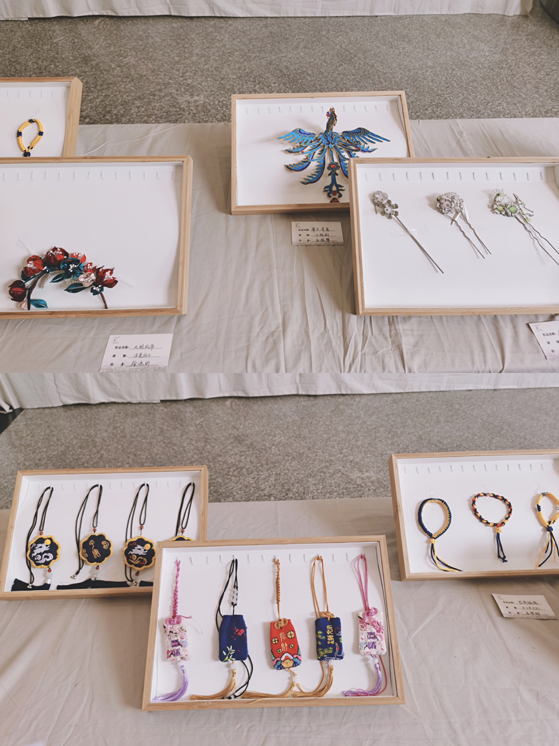 18定向2班徐冰昕的的缠花作品《大明风华》,为我们生动的再现了于电视剧《大明风华》中胡善祥佩戴的发簪。她表示随着汉服的复兴,也带动了许多非遗文化的新生,缠花作品也在通过不断的发展与创新,向大众展现出新的生命力。