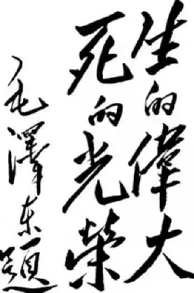 1947年3月下旬,毛泽东带领中共中央机关转战陕北途中,中共中央书记处书记、中央纵队司令员任弼时向他汇报了刘胡兰英勇就义的事迹 ,毛泽东问:“她是党员吗?”任弼时说:“是个优秀的共产党员,才15岁。”毛泽东深受感动,挥笔写下了“生的伟大,死的光荣”8个大字。