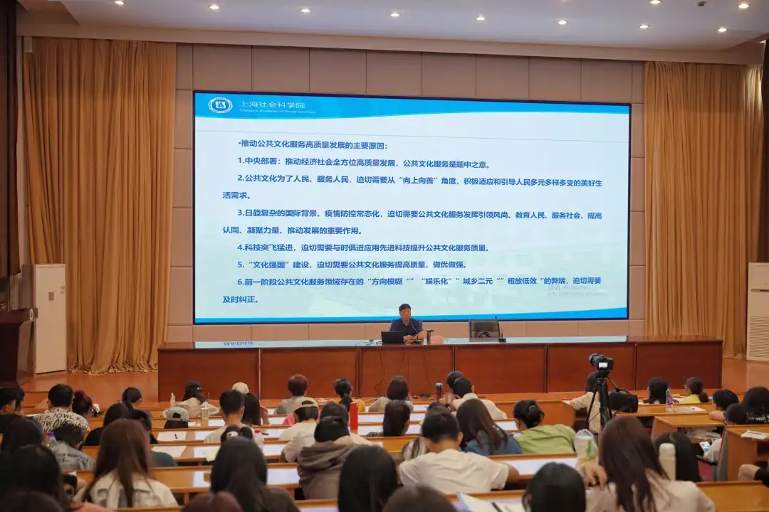 讲座上,巫志南分别从国内形势与国际背景、中央与人民、科技与文化等不同角度深度剖析了推动公共文化服务高质量发展的主要原因。接着重点解析了四个问题:一是加强意识形态引领;二是公共文化服务高质量发展的总体要求;三是示范区公共文化服务高质量发展的要求;四是当前公共文化服务高质量发展几个关键环节。讲座紧贴时代现状,深刻贯彻习总书记的理念。他还强调了科技知识的重要性,今后的公共文化服务不仅是艺术和纯阅读的时代,更是属于数字网络的时代。希望同学们能够一专多能,多学习掌握更前沿的科技知识。