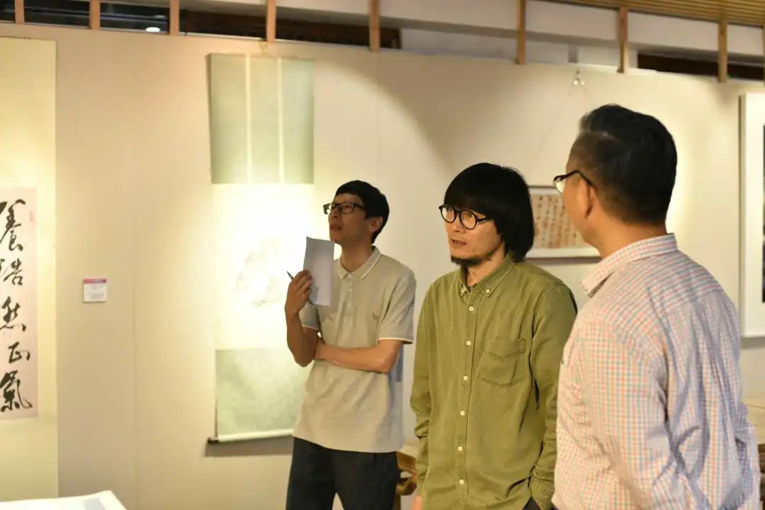 考核组评委美术系常务副主任李昌国、文管系首席专家陈子达、美术系副教授叶峰泉认真观看每一幅作品,并对其打分。李昌国指出,本次技能考核内涵丰富,既能展示教师自身专业能力,也能体现对待技能考核的重视程度,从而一窥教师对待课堂的态度。同时建议在下一轮的技能考核中,可以再深入一些,单纯以作品的形式考核不能完全体现教师的专业技能;陈子达鼓励教师在今后的展览中要进一步做好做强,要在展览中体现出更多的教学过程,并完善修复档案。