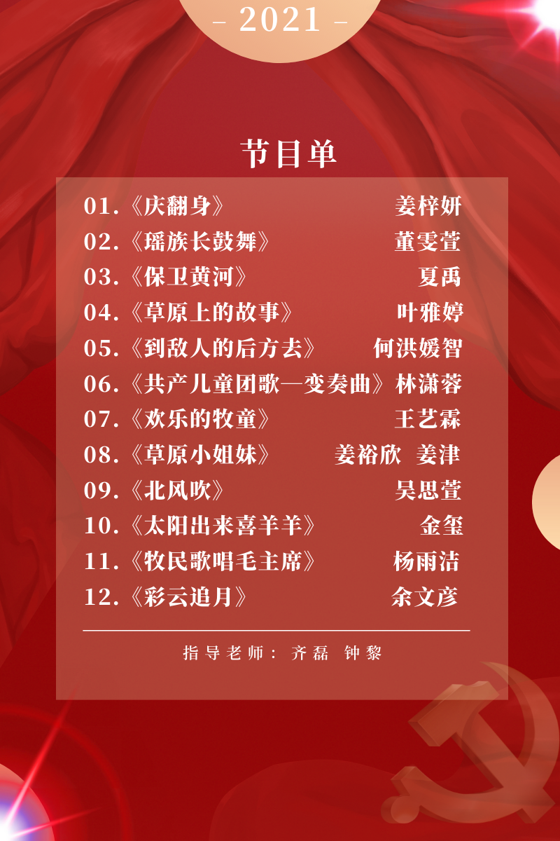 时光悄悄流淌,美妙的音符在指尖跳跃。红色情怀的渲染与民歌旋律的浸润,她们用荡气回肠、深入人心的琴声表达对中国共产党成立100周年的美好祝愿。