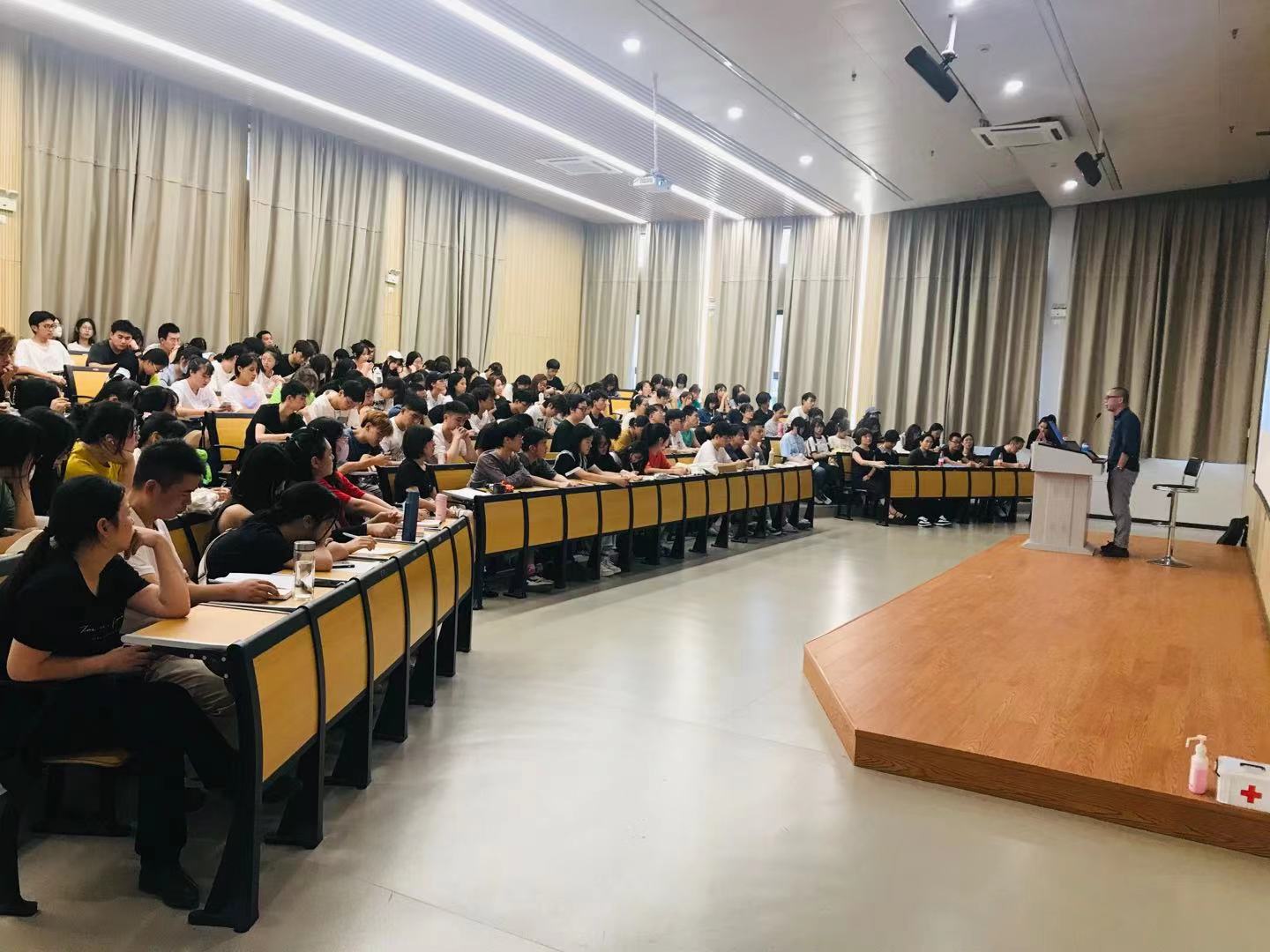 在这场讲座当中,阶梯一教室座无虚席,师生们都在讲座中受益颇多,不时对郑嘉励的讲解抱以热烈的掌声。在讲座的最后,系主任刘秀峰老师对师生寄语,希望大家能从郑嘉励对“宋韵”的解读中受到启发,在今后的作品创作、综合展演季等工作当中,做出更多有益的思考和探索。