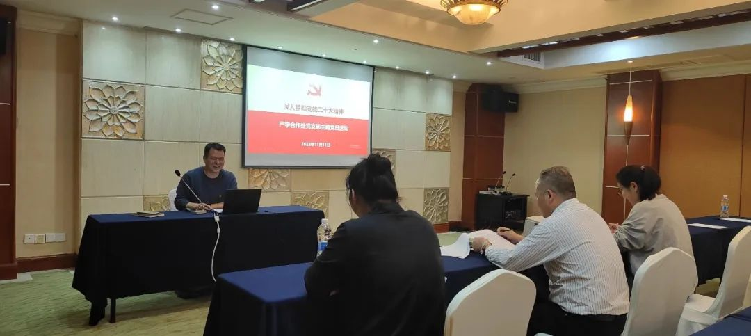 产学合作处党支部书记屠灵华带领支部全体党员以“学习贯彻党的二十大精神”为主题开展专题研讨,从党的二十大主题和主要成果、过去五年工作和新时代十年伟大变革等做好理论研究,推动党的二十大精神入脑入心。