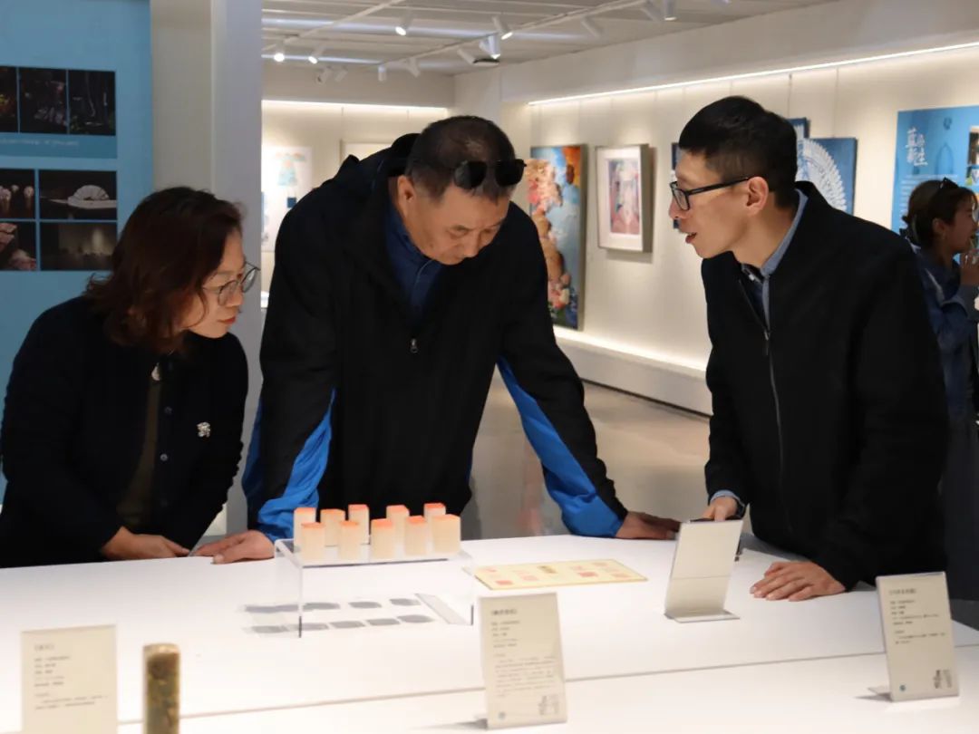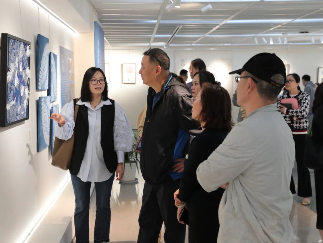 调研伊始,手工艺学院民族传统技艺研究所负责人陈沁杰、民族传统技艺专业教研室主任胡锦霞、文物修复与保护专业教研室主任潘文娟、专业教师江杰、展示艺术设计专业教师孙艺萌等引导大家参观了学院“匠心守艺”教学成果展,从书画装裱、古籍修复、古陶瓷修复、青瓷烧造、金工首饰、刺绣工艺、水印木刻、石雕篆刻、传统印染、文创产品设计等方面为调研团队阐释了手工艺学院的工艺美学思想。