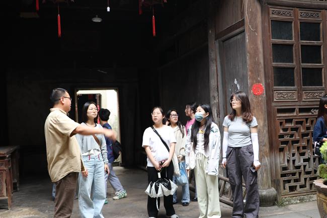 活动开始前,“深澳百匠艺术文化村项目”发起人宋凯带领同学们参观古村落,感受文化古村魅力。深澳古村是申屠家族的血缘村落,是桐庐一带的江南古村,因其庞大的古建筑群、独特的地下水系、深厚的宗族文化和浓郁的民俗风情而闻名。近年来,深澳村坚持以“明清古建筑群”为肌理,“地方民俗文化”为特色,“美丽田园风光”为底板,深度挖掘古村落资源,加快盘活闲置资产,突出“古风古韵”,着力打造“百匠创客街区”,探索资源转化富民之路,实现“村美”与“民富”的有机统一。