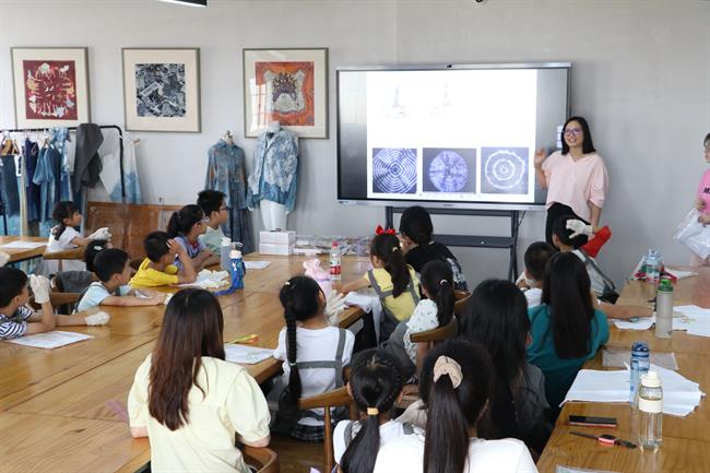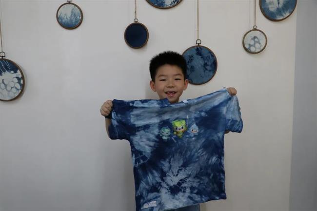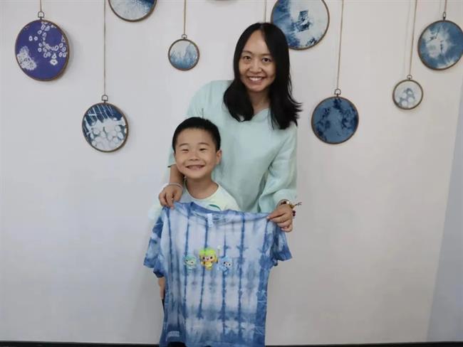 下午,在手工艺学院扎染实训室,小朋友们跟着专业授课教师胡锦霞老师体验了一把扎染的乐趣。在“艺小匠”志愿者团队的帮助下,孩子们在这场与“染”的邂逅中,体验用木棒、树叶、麻绳等简单材料,经过巧手加工,放入靛蓝染缸里,创造出了独一无二的专属扎染作品。