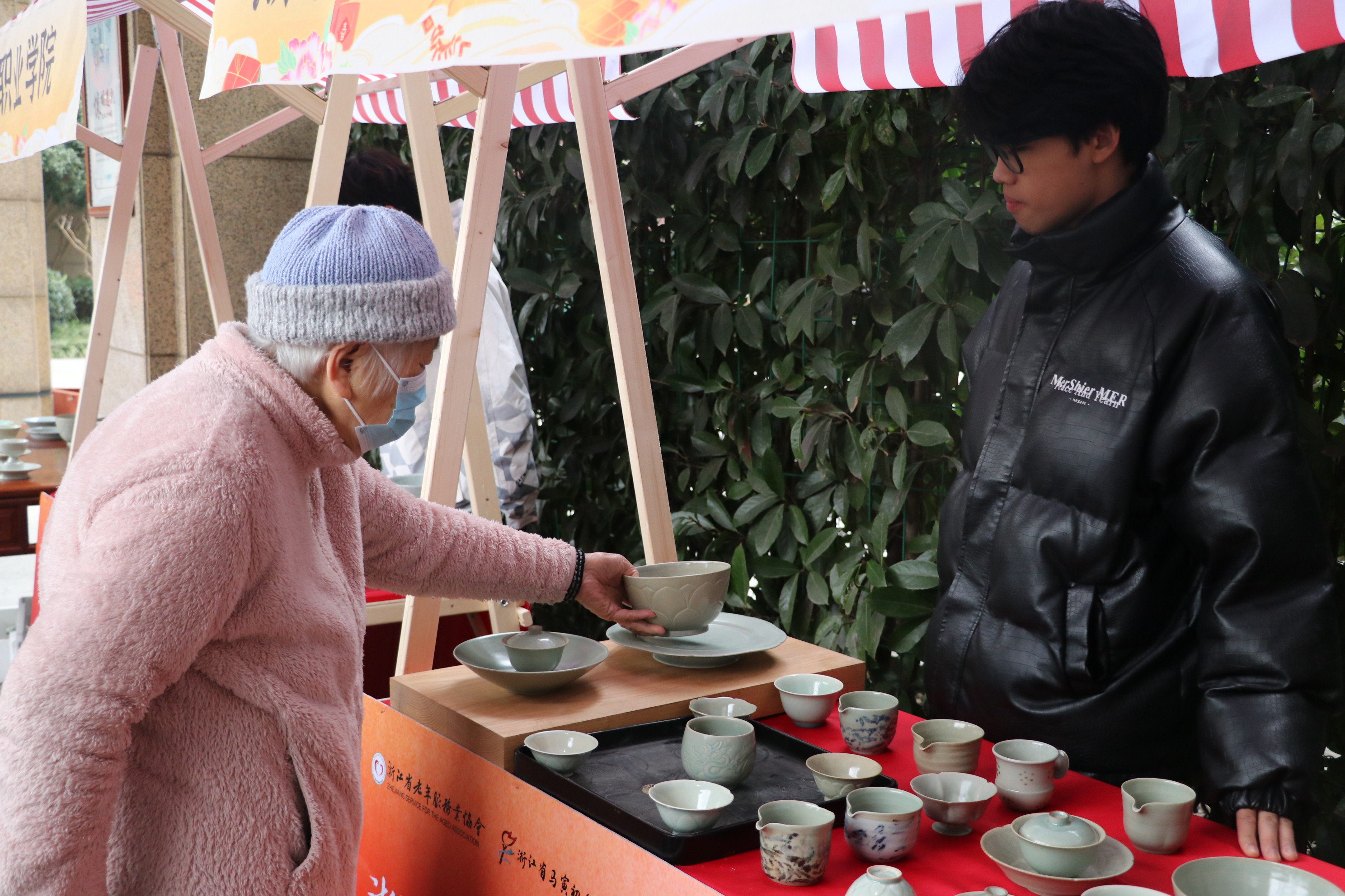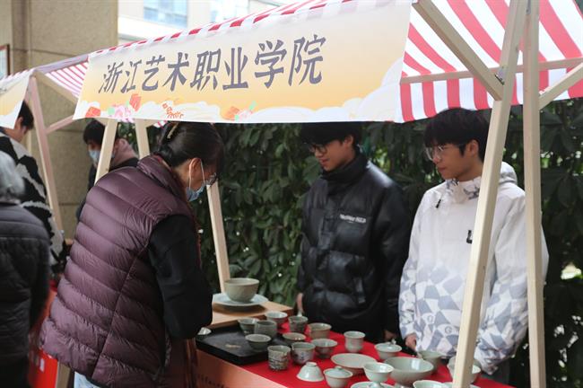 1月18日上午,手工艺学子们精心准备了自己的手艺作品,来到滨江绿康阳光家园养老院,助力“银发市集”活动,用非遗技艺陪同长者们一起感受传统文化之美。