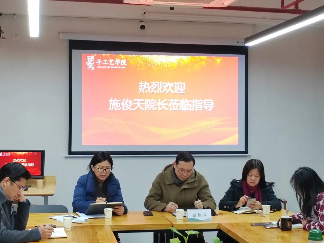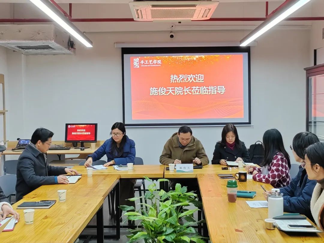 会上,施俊天详细了解了手工艺学院专业建设和学科发展等情况,他指出优秀传统文化是手工艺学院发展的立足点,希望手工艺学院利用好错位发展优势,在专业发展中加快融入科技元素和现代技术,促进非遗创造性转化和创新性发展。