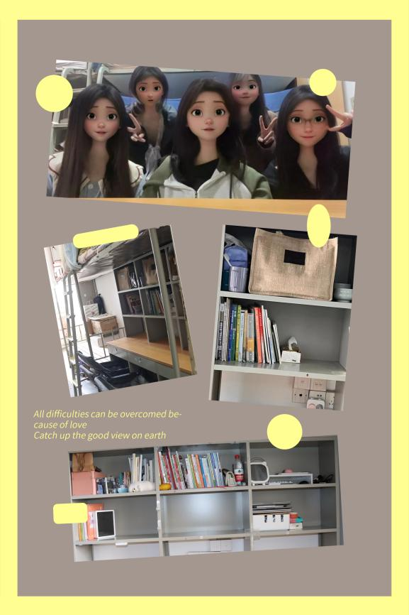 寝室介绍:一往“寝”深,“宿”说青春。我们五人来自不同的城市,最后相聚在浙江艺术职业学院。有着不同的性格,却摩擦出阵阵温暖的火花!宿舍是我们生活和学习的重要场所,更是学院精神文明建设的重要窗口。“宿舍友谊长存,生活和谐简朴”是我们的目标与追求,也是我们的共同愿望。斯是简易之小室,却在大家的相处与陪伴中显得温馨,富有烟火气。我们将寝室装点的整洁舒适,将生活过得有滋有味。寝室的一切,都反映着我们想要共同进步的决心。一个干净整洁、陈列有序、空气清新的寝室不仅为我们提供舒适温馨的居住环境,更成为陶冶情操、栖息心灵、宁静和谐的学习环境。朝夕相处,心也相知,日子细水长流,我们寝室的故事未完待续……