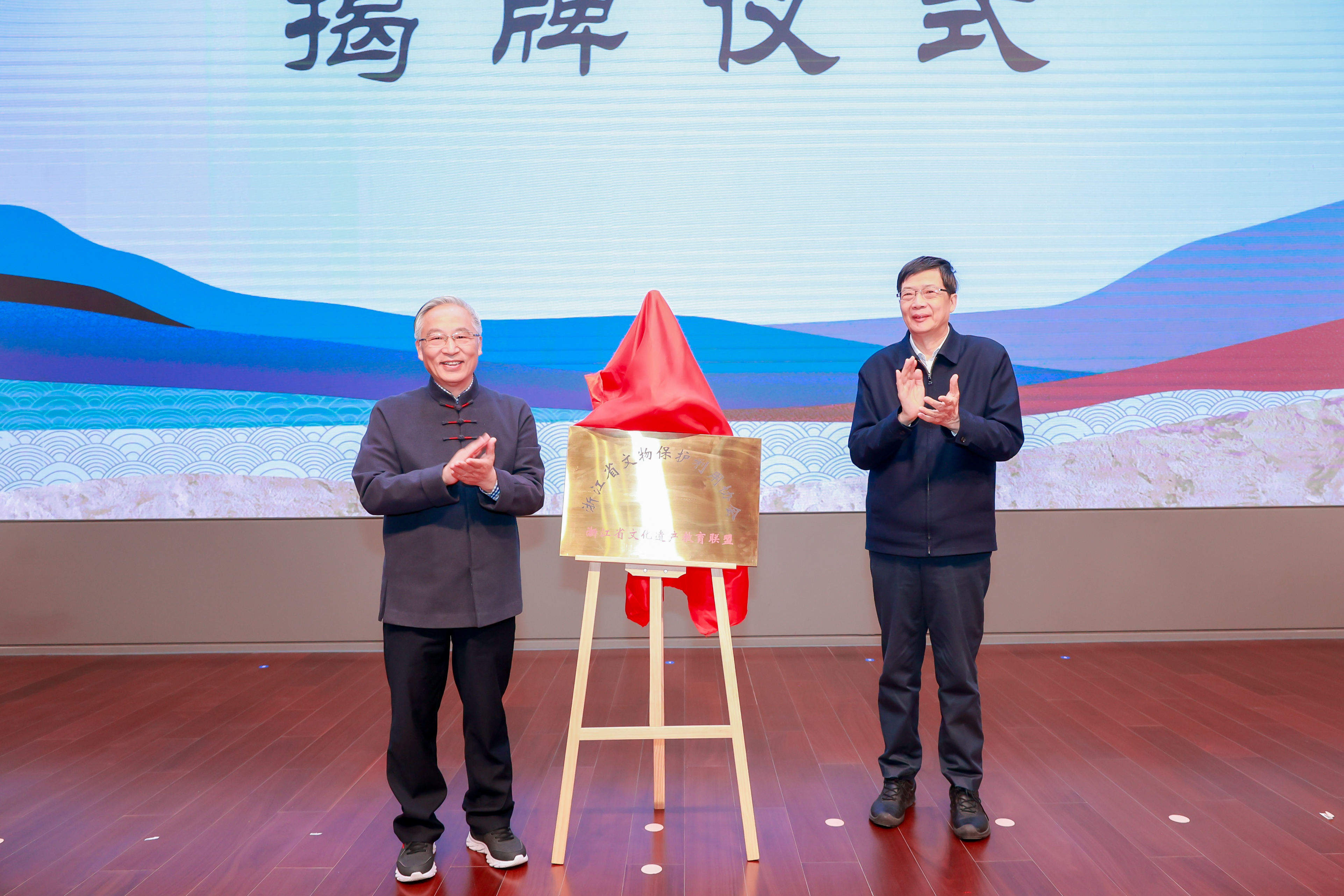 陆进、杨建武共同为浙江省文化遗产教育联盟揭牌。