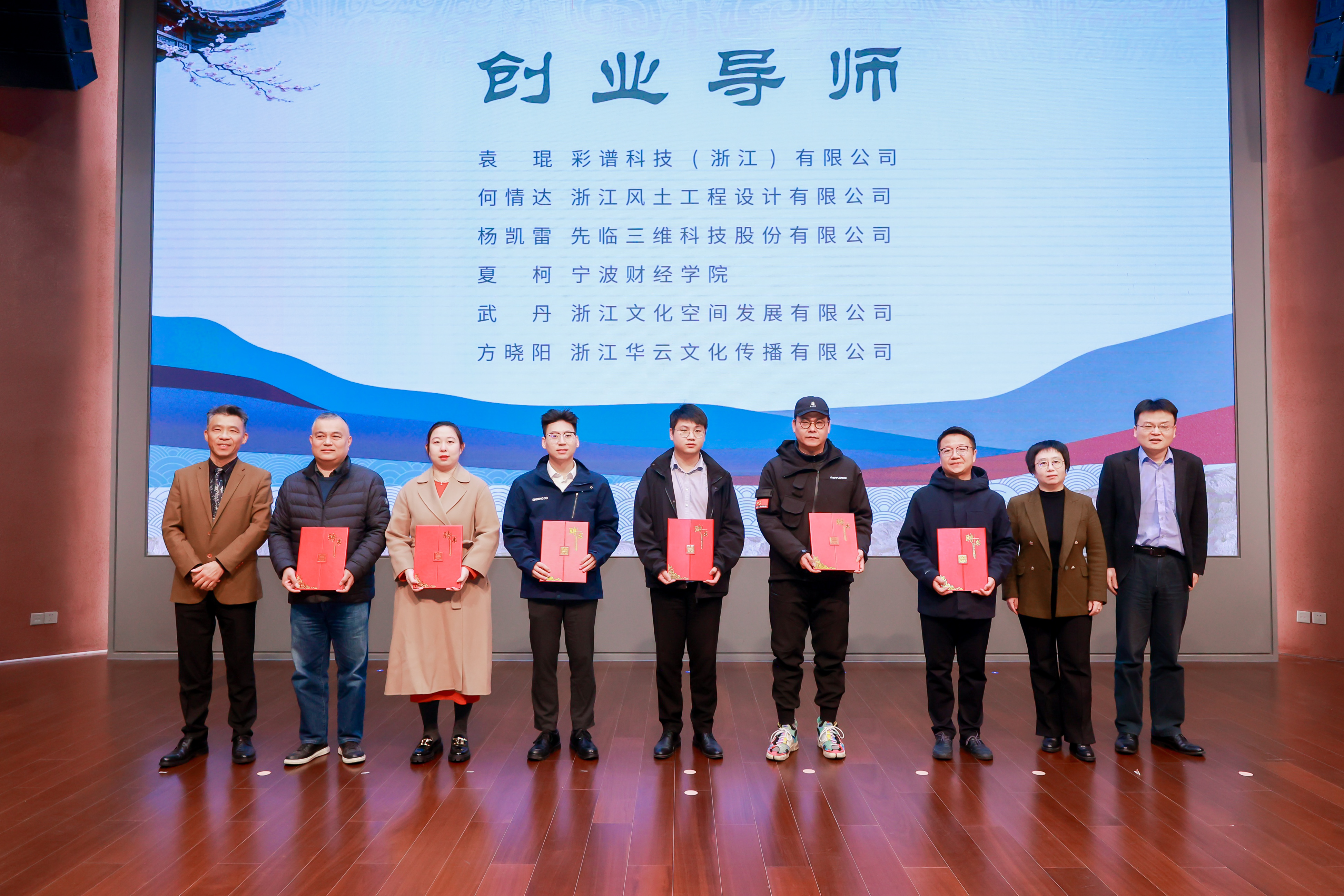 文物修复与保护利用产教融合共同体的牵头单位代表张喆、杨程、沈军甫,为13家新进共同体单位代表授牌并举行聘任仪式。未来他们将在教育、科技、文创等领域为共同体提供支持。
