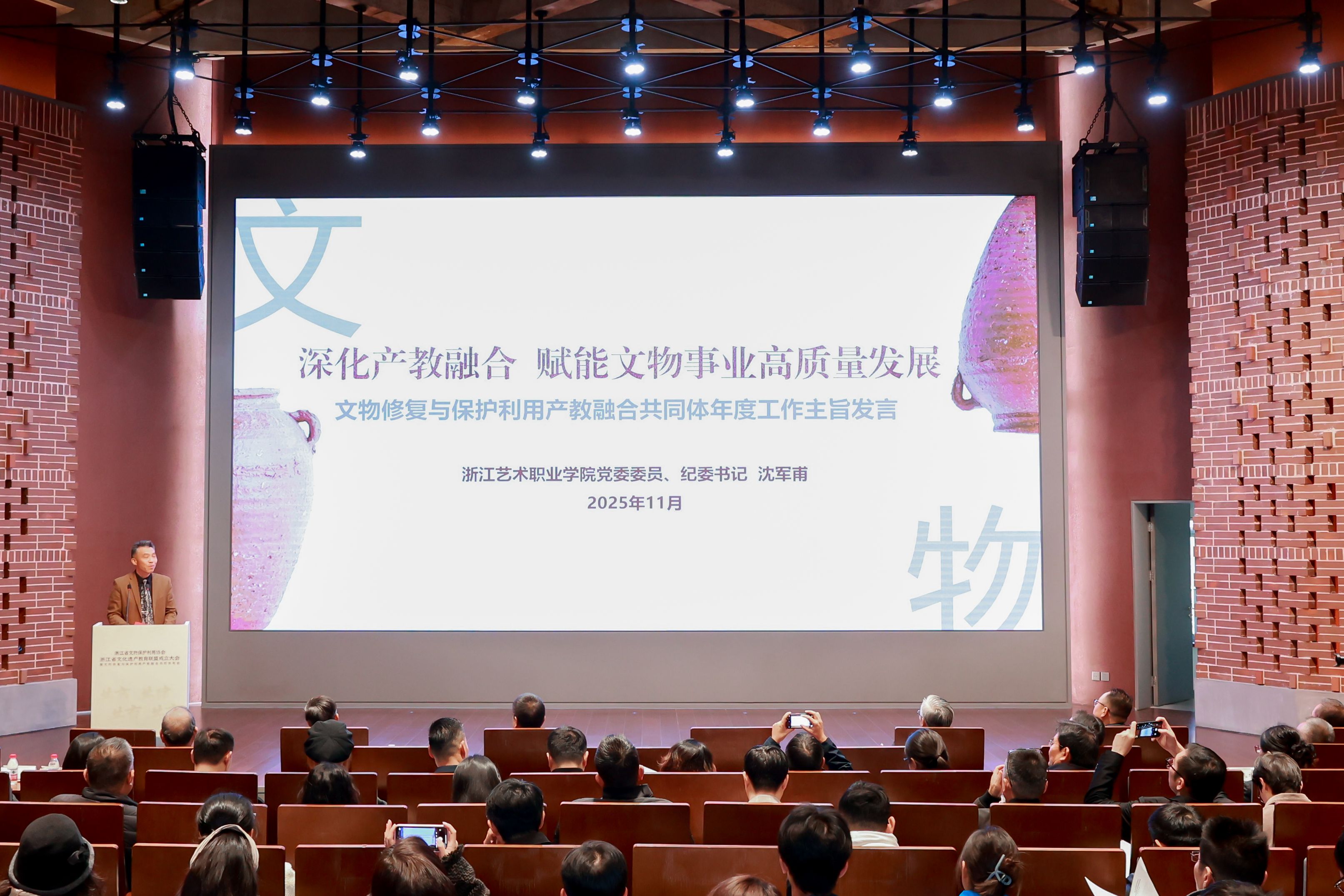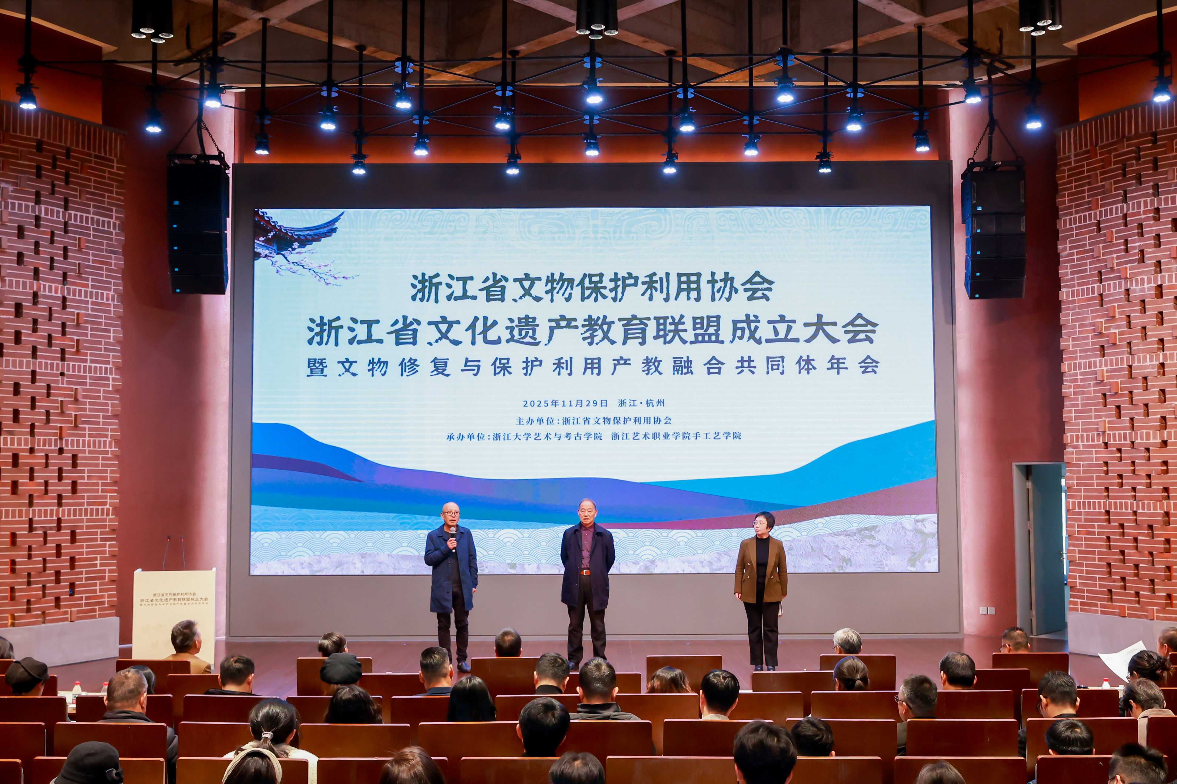 11月29日,浙江省文化遗产教育联盟成立大会暨文物修复与保护利用产教融合共同体年会在浙江大学西溪校区逸夫科教馆隆重举行。本次会议以“共商、共建、共育、共享”为主题,汇聚行业协会、高校、职业院校、文博机构和科研院近200余名代表,共同推动文化遗产领域产教融合与人才培养体系建设。