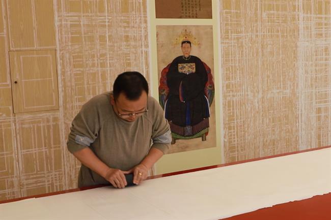 第二,清洗过程因为画心霉烂、糟朽、掉色等原因,纸质极为脆弱,故先要对脆弱部分进行加固、固色等操作,用开水进行淋洗,去除画芯上的霉斑、污渍,清洗过程需要极其细心,动作要轻。
