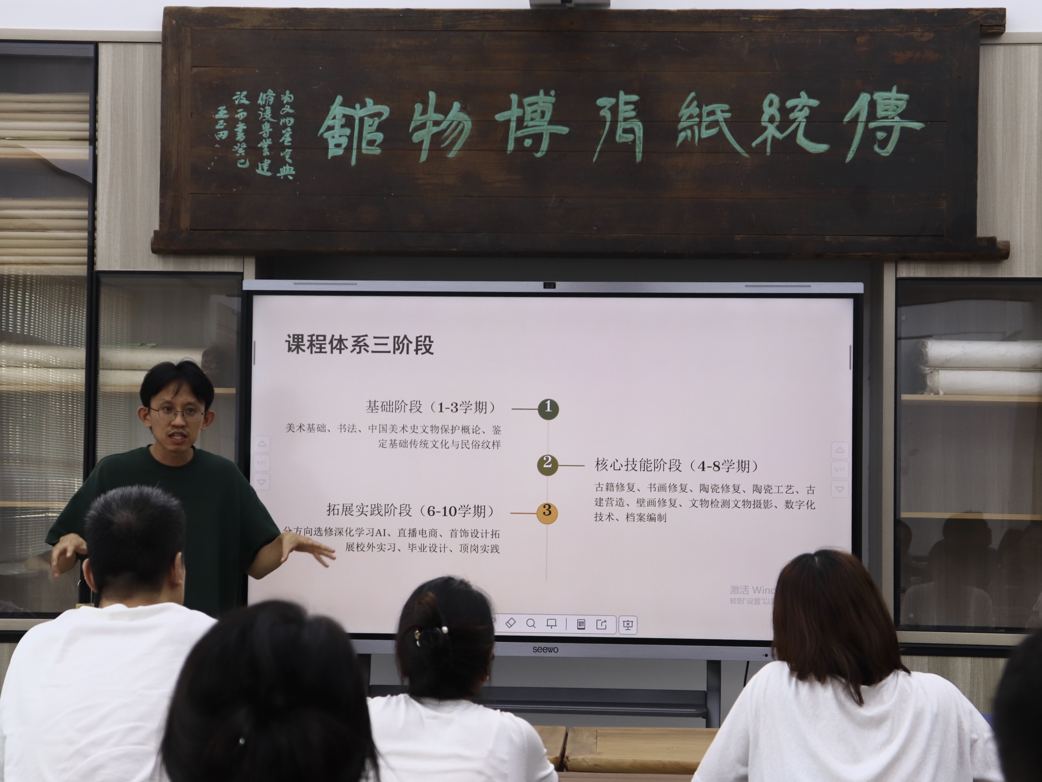 文物修复与保护教研室主任林维业结合文物修复与保护专业前沿动态与行业趋势,围绕专业发展方向和人才培养方案,介绍了专业课程和实践课程,剖析了学生未来的学习重并点明长远规划发展的重要性。