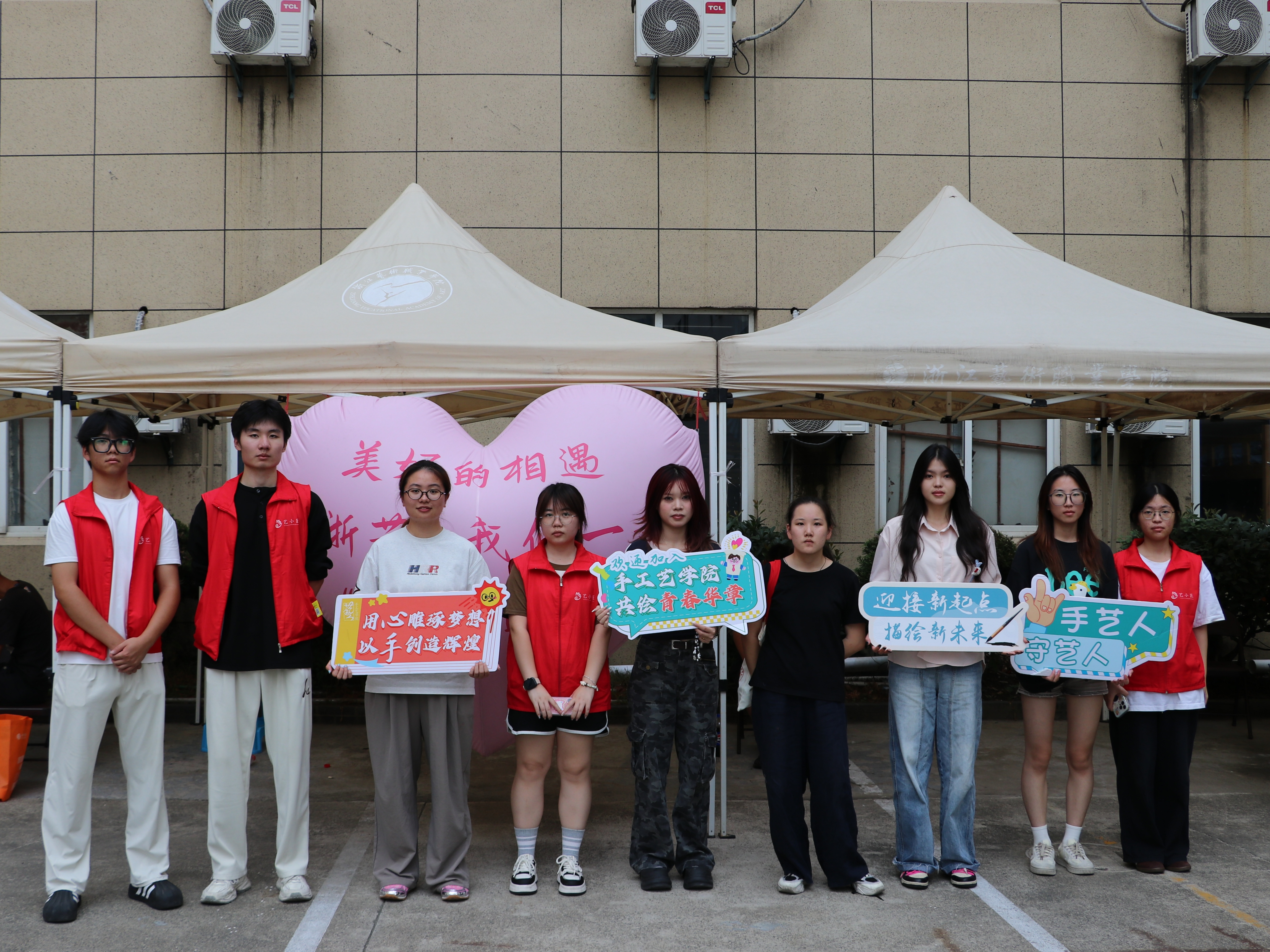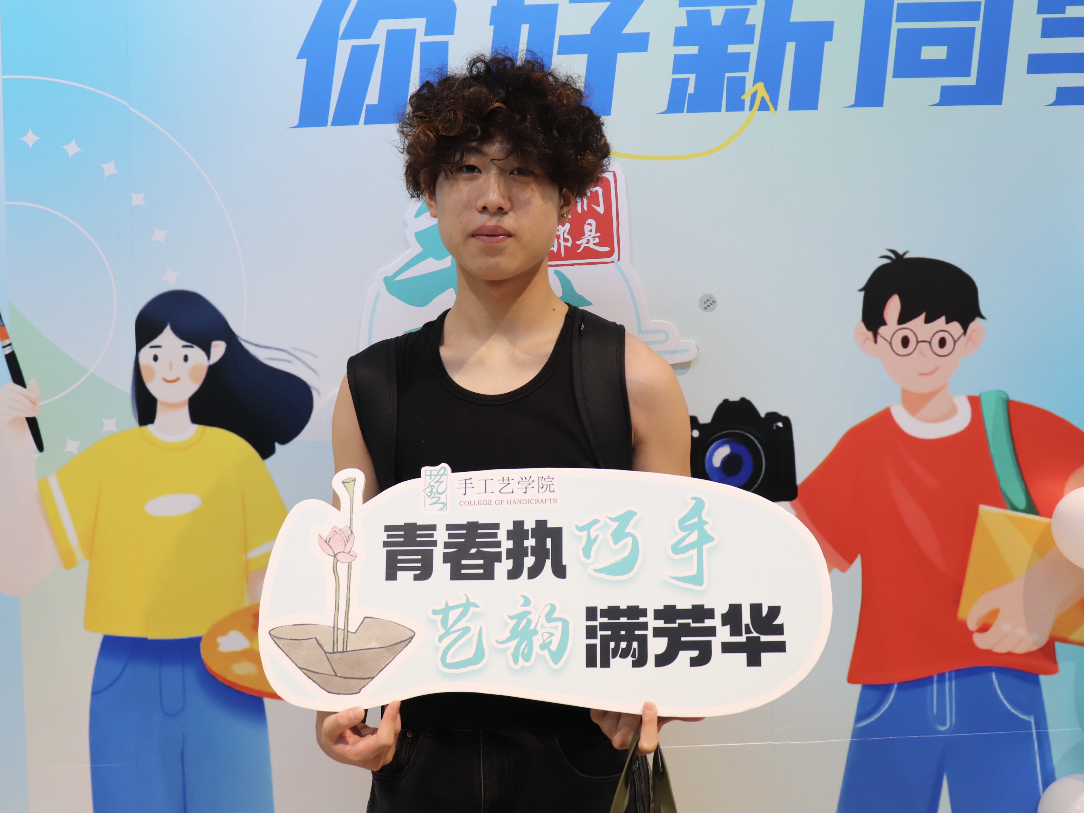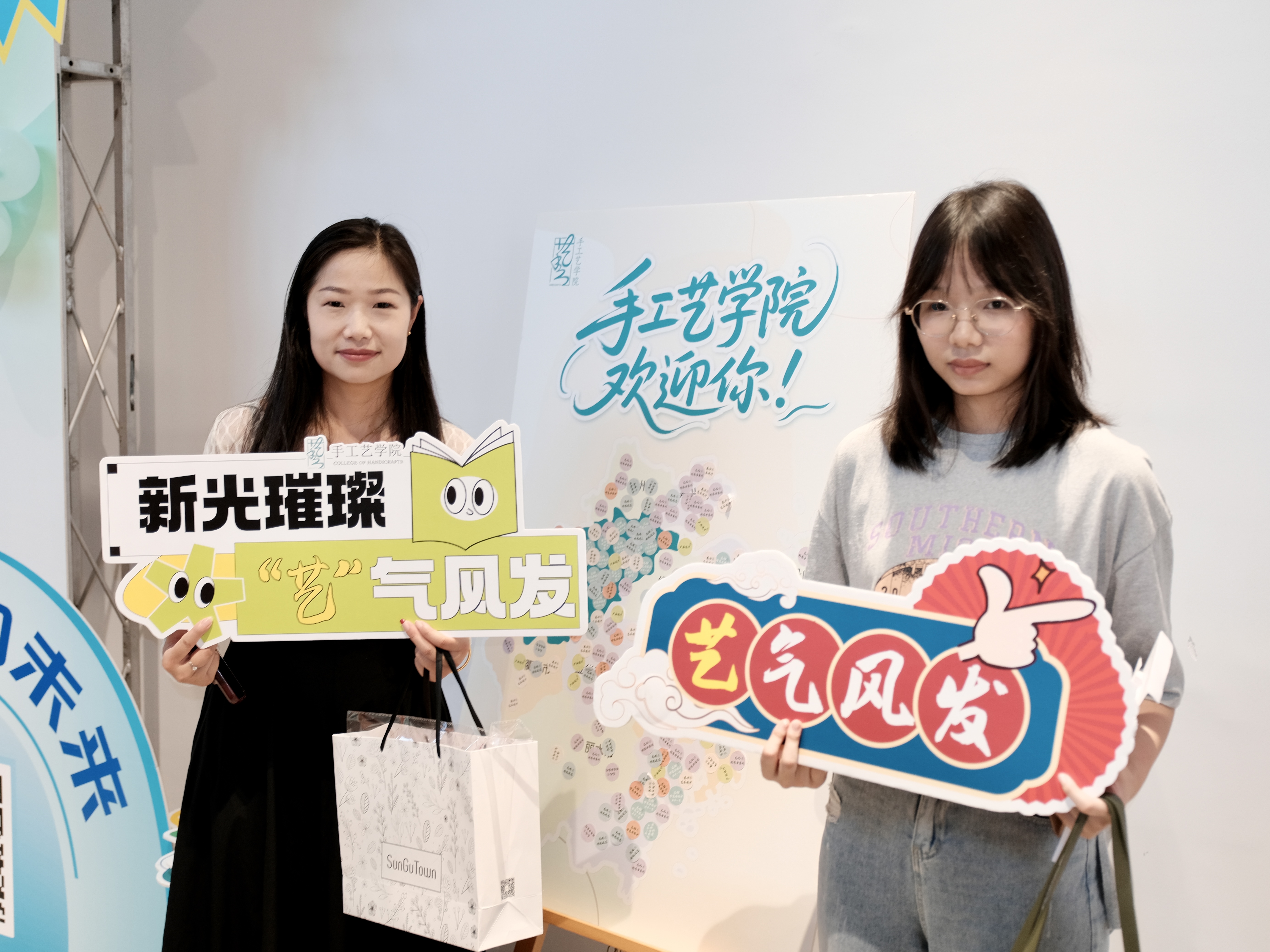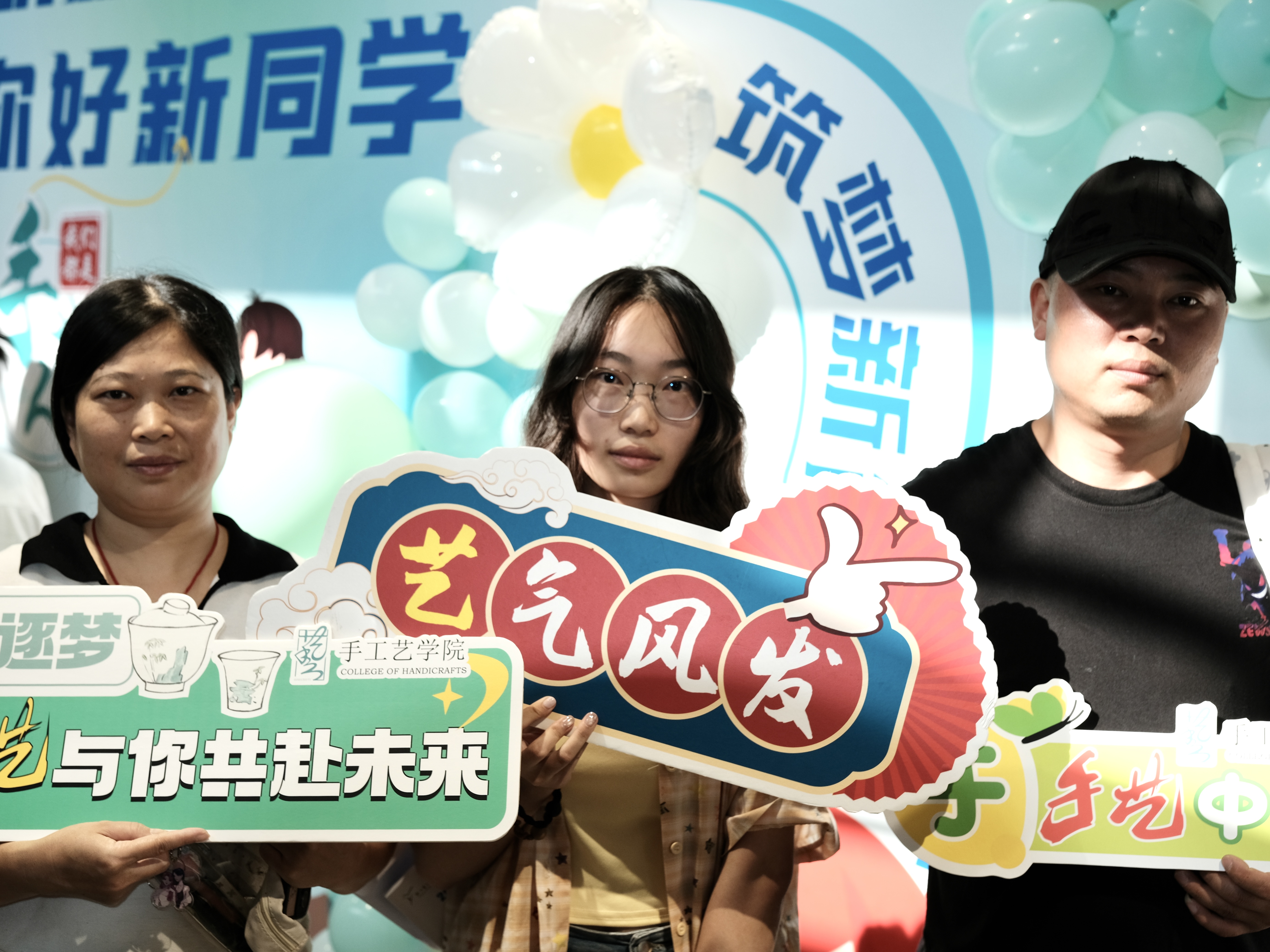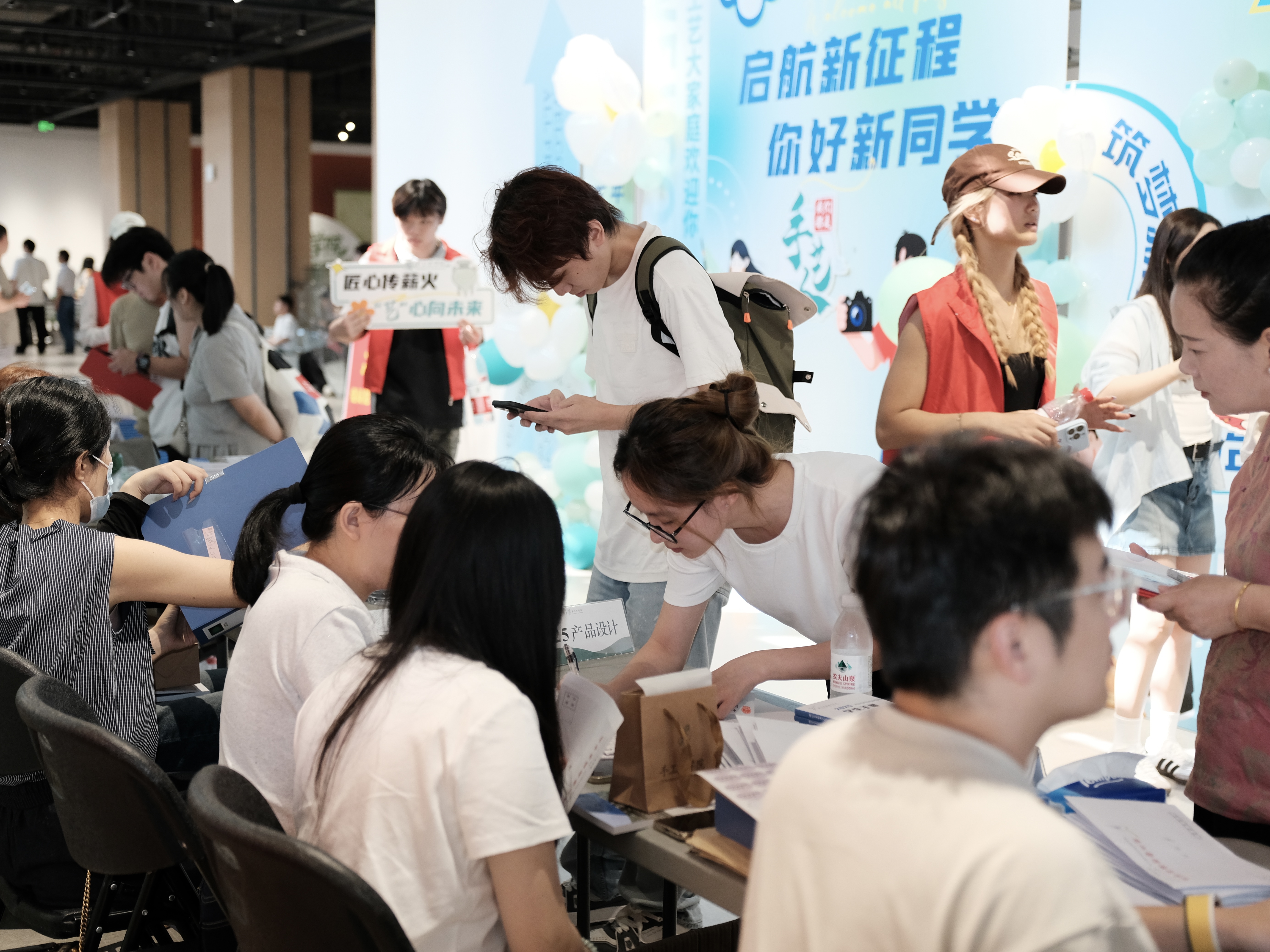 一幅幅书法墙,写下“传承与创新”;一张张喷绘,记录热烈的迎新瞬间;一份份“我是手艺人”的手工定制物料,成为与新生的第一次见面礼。