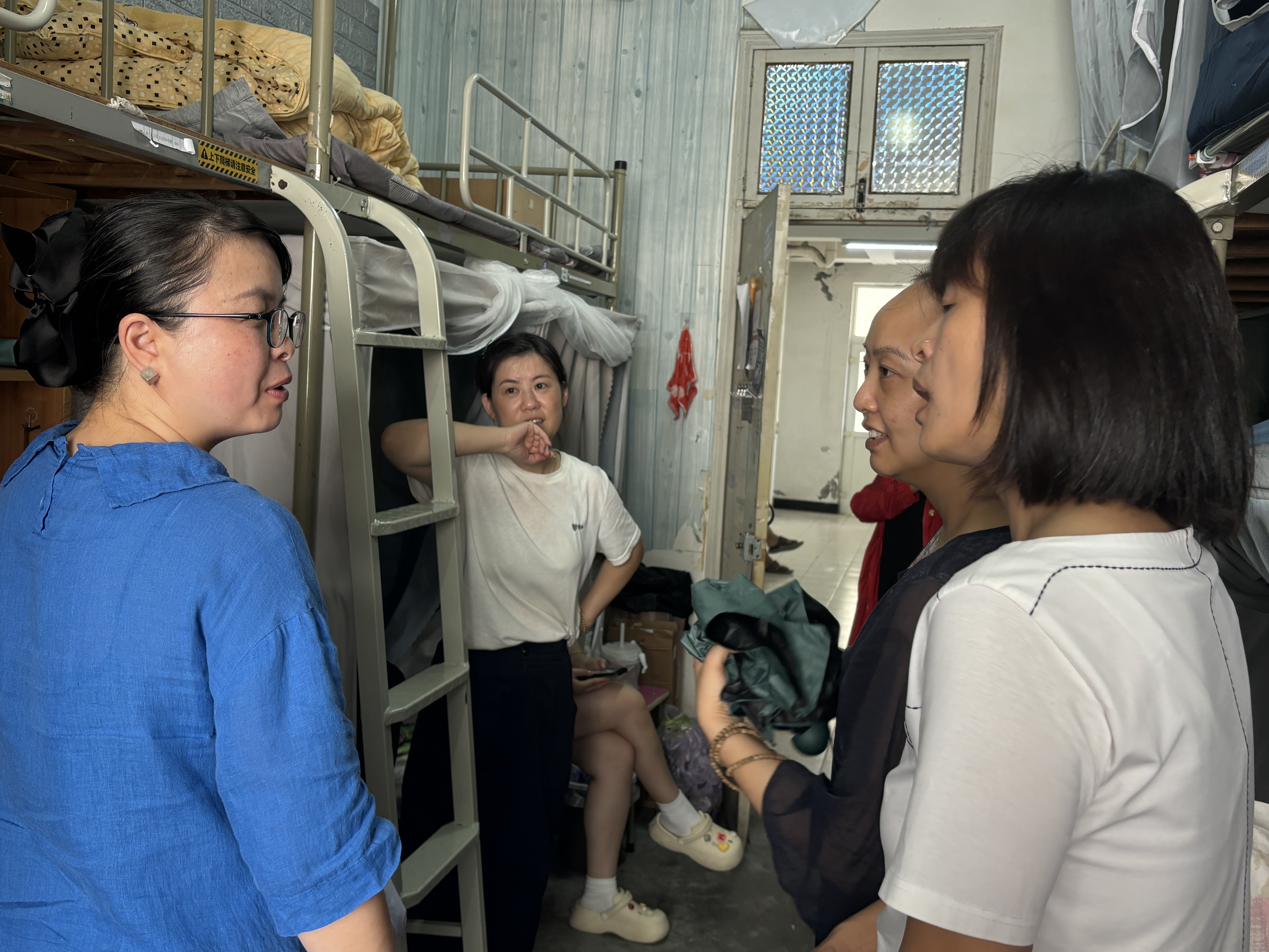 在寝室内,党总支书记钟黎亲切地与同学们交谈,询问家乡地域、兴趣爱好与开学适应情况。她送上真挚祝福,勉励大家勤奋学习、脚踏实地,在逐梦艺术的道路上笃行不怠。