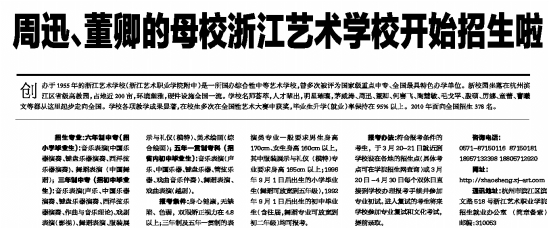 钱江晚报讯:周迅、董卿的母校浙江艺术学校开始招生啦