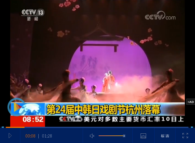 央视新闻讯:第24届中韩日戏剧节杭州落幕