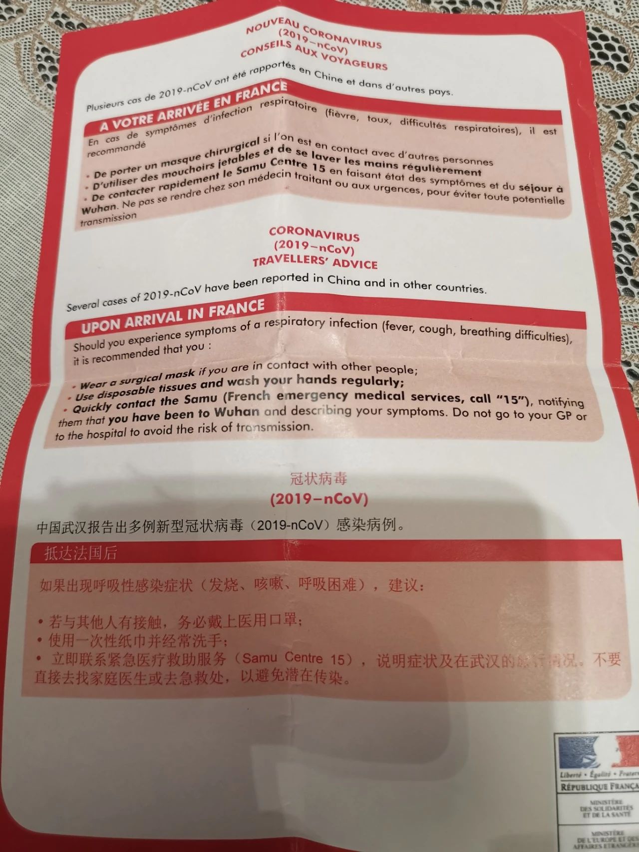 落地巴黎后的疫情告知书