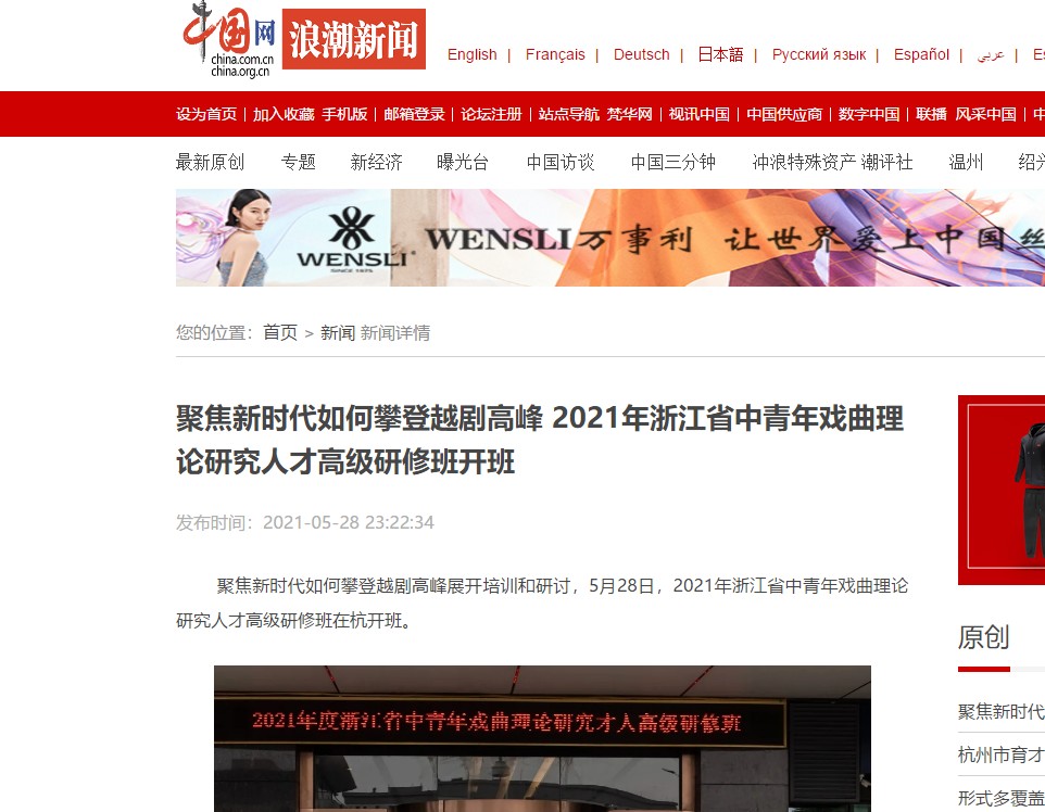 聚焦新时代如何攀登越剧高峰展开培训和研讨,5月28日,2021年浙江省中青年戏曲理论研究人才高级研修班在杭开班。