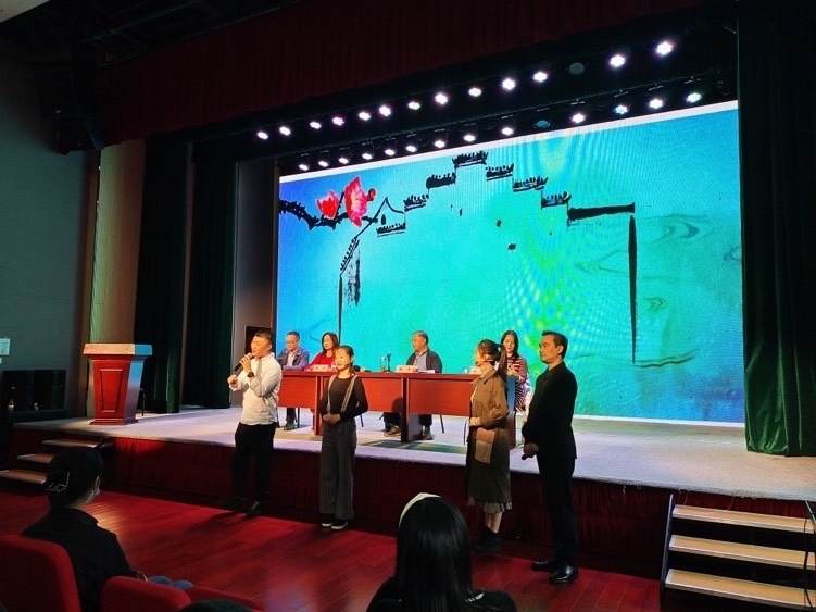 近日,浙江艺术职业学院戏曲学院2021级甬剧(大专班)开班仪式在宁波天然舞台小剧场举行。浙江艺术职业学院戏曲学院党总支书记兼副院长谢青给学生们饱含深情地讲解了未来三年学校要授予的知识体系,26位甬剧新秀也迎来了大专学习生涯的第一课。