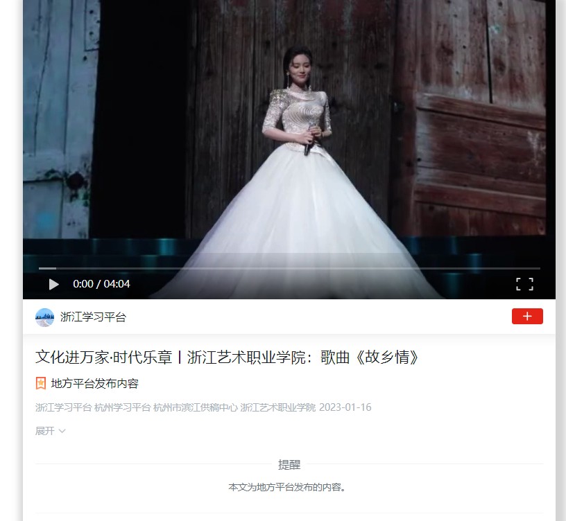 学习强国浙江平台:文化进万家·时代乐章丨浙江艺术职业学院:歌曲《故乡情》