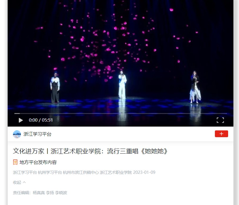 学习强国浙江平台:文化进万家丨浙江艺术职业学院:流行三重唱《她她她》