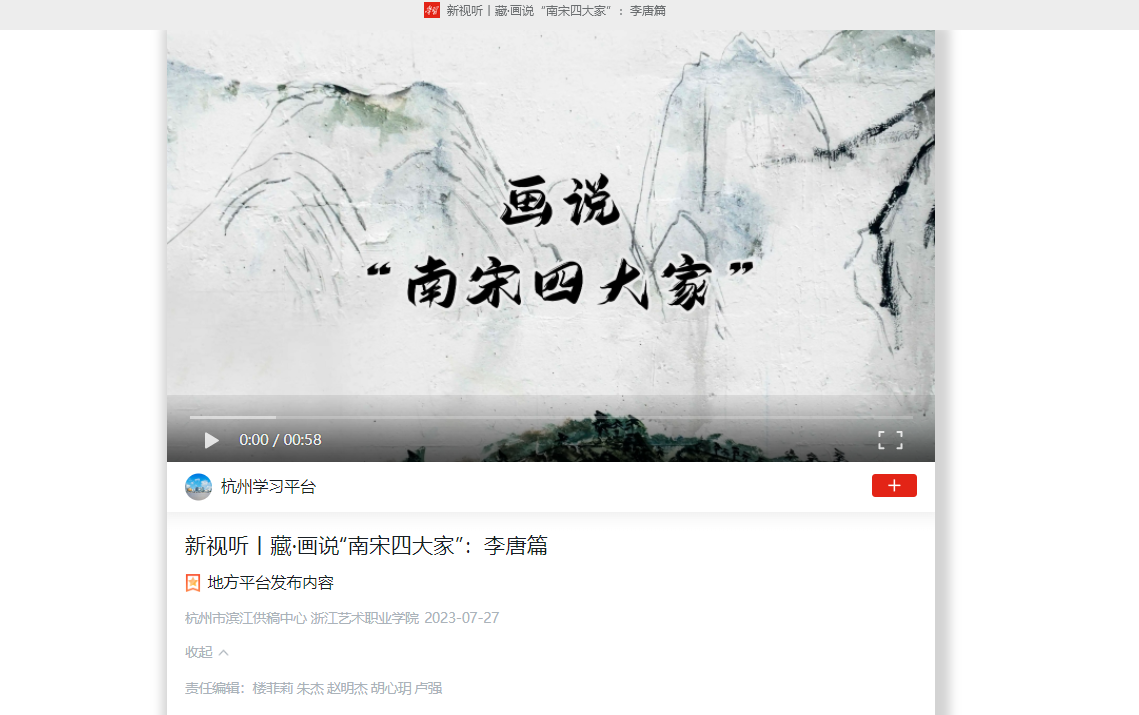 学习强国杭州平台:新视听丨藏·画说“南宋四大家”:李唐篇