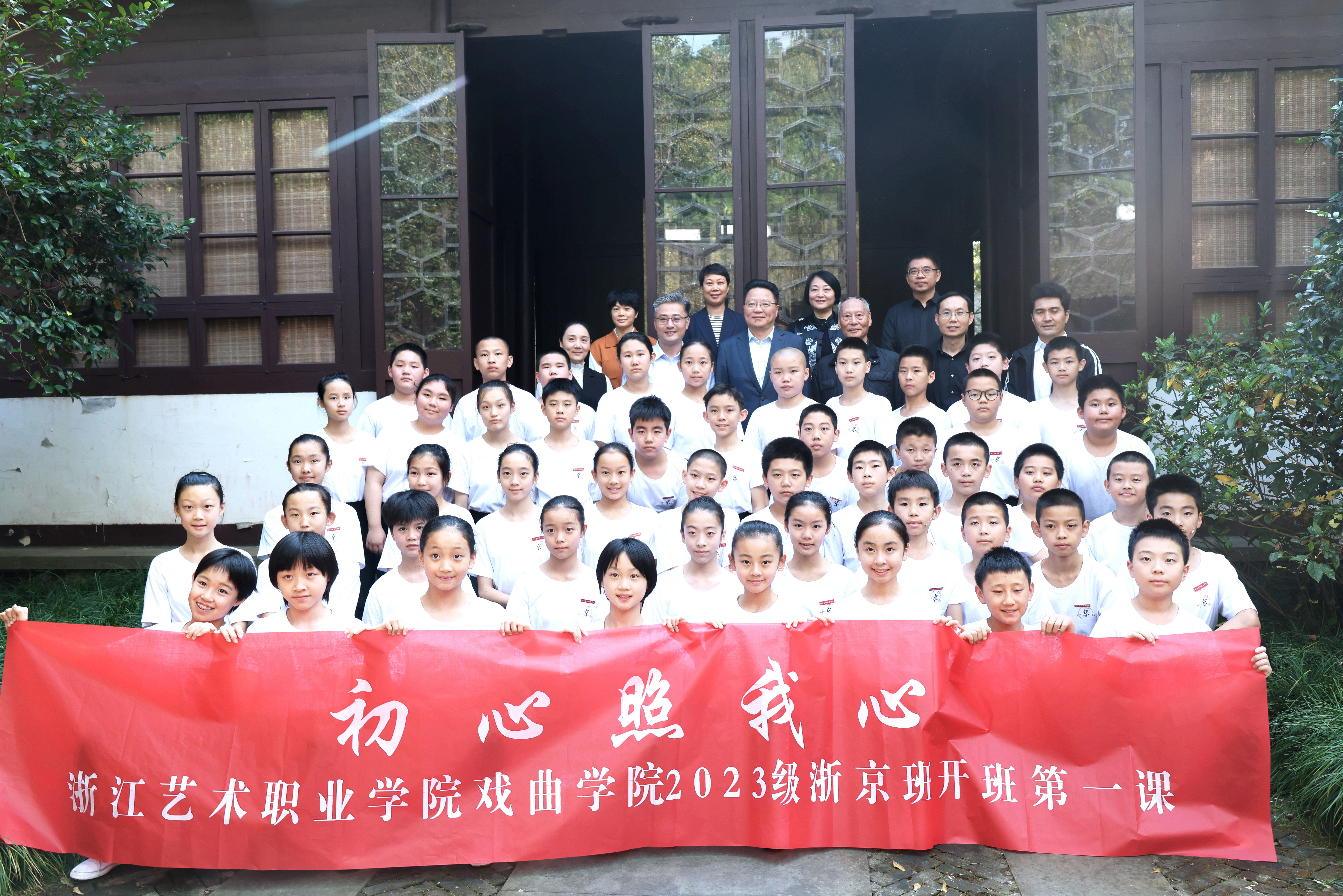 为弘扬中华优秀传统文化、建设社会主义文化强国,以高质量艺术教育助力戏曲事业传承发展,10月23日下午,由浙江艺术职业学院、浙江京昆艺术中心联合举办的2023级京剧班(京小班)开班典礼暨“开学第一课”在西湖畔盖叫天故居举行。培养新一代的京剧表演艺术接班人,是京剧人不可忽视、不容推卸的历史责任,这是浙江时隔31年再度开办京剧表演艺术专业订单班。50名小小京剧人行拜师礼、接练功带,以奋进之姿赓续浙江京剧薪火。