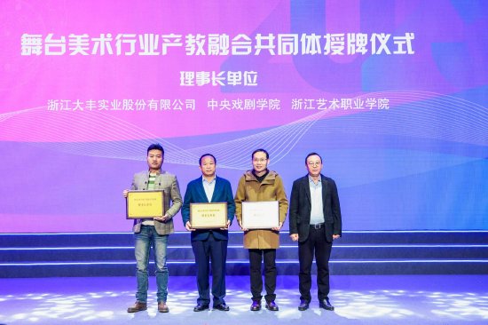 11月26日上午,由文化和旅游部科技教育司、全国文化艺术职业教育教学指导委员会指导,浙江大丰实业股份有限公司、中央戏剧学院和浙江艺术职业学院共同发起,66家学校、科研机构、行业企业等共同组建的舞台美术行业产教融合共同体成立大会在浙江艺术职业学院举行。