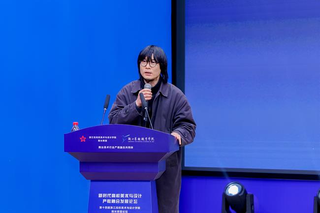 联盟副秘书长、浙江艺术职业学院校长、党委副书记施俊天为论坛作开幕致辞和会议总结。他指出,随着社会对艺术和设计人才需求的日益多元化,产教融合已经成为推动高校美术与设计教育发展的重要途径,把握在新领域新赛道弯道超车的战略机遇,就必须在产教融合中不断丰富高等教育的新内涵。本次论坛围绕三个聚焦:一是聚焦四链贯通,教育链、产业链、人才链和创新链;二是聚焦四个合作,合作办学、合作育人、合作就业、合作发展,实现产业、专业、就业三联动;三是聚焦四景运通,产学场景联通,产研场景畅通,产训场景贯通,产创场景融通。希望通过这次论坛,进一步深化省内美术与设计教育领域的交流合作,进一步强化资源共享、优势互补、协同创新,为浙江省乃至全国高校美术与设计教育的发展做出更大的贡献。
