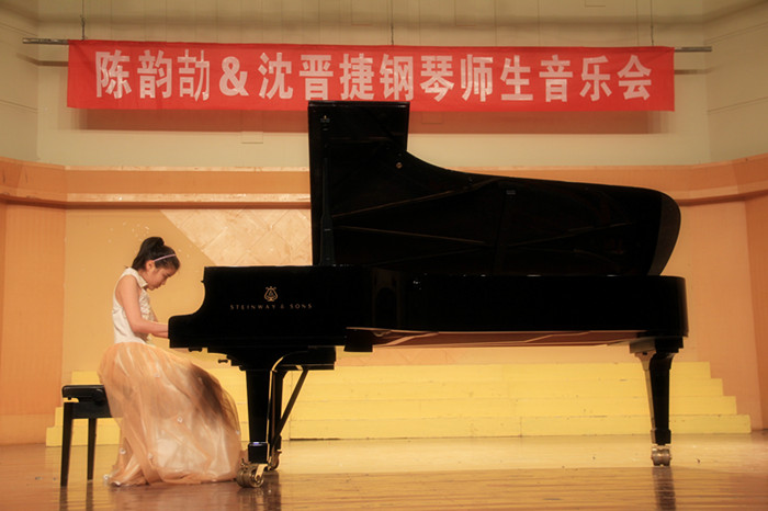 这次音乐会分上、下两场,演奏分别由附中10音乐班学生沈晋捷,特邀嘉宾、中央音乐学院附中学生万小丫和中央音乐学院钢琴教师陈韵颉三人担任。整场音乐会没有炫目的灯光效应,没有奢美华丽的场景布置,一切都简单纯粹。重头到尾一架黑色大钢琴立于舞台中央,似乎喻意着这场音乐会的表演者为钢琴而活、而乐、而坚持。