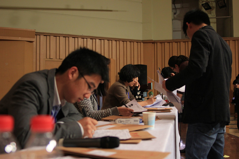 从4月4日上午一直到今天的两天时间,1号楼大厅内,负责考试报考录入的工作人员十分认真仔细地核对着每个考生的资料,并帮助考生顺利填报志愿。