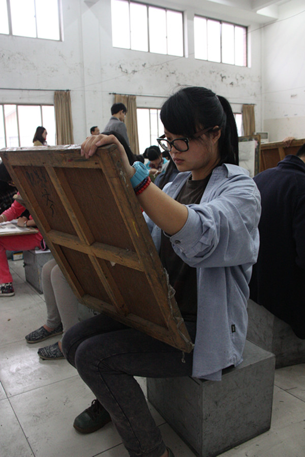 美术专业的考生在规定的考试时间里,一直在坚持,希望自己不留遗憾,完成作品。