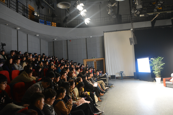 《品·读》会分两个部分。王苏首先从主题“如何用语言来画画”展开交流,告诉大家如何让书面的语言立体起来、让听众走进声音画面里来,一同呼吸,一同感受,一同思考,一同生活,最后一同创作。为了能让大家更好地理解,王苏还和表演专业的同学进行了面对面交流,通过对几篇小短文的练习告诉大家声音表达的四大基本技能,让大家切身体会如何“绘声绘色,声情并茂”地来让语言更生动立体富有生命力。