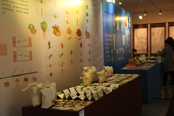 走进大厅,在明亮的空间里,左手边是家具和软装设计作品。色彩鲜亮、以年轮为造型的座椅与自然朴素的软装设计《麻居》形成鲜明的对比,艺术性的空间展示了别样的家居风格,原麻材料的运用更是提倡了环保理念。右手边,以蔬果为主题的包装设计朴素简洁,清新活泼,体现出“健康饮食,健康你我”的主题。将木头人的操作方法以一张张图展现出来的书籍设计《木头人动起来》和诗集《春江花月夜》的镂空部分等作品都各具特色。