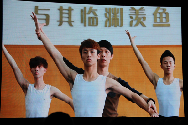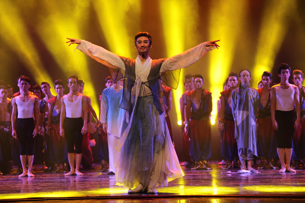 晚会通过展示“基训”、“身韵”和“剧目”这三大核心课程教学内容,使课堂教学“舞蹈化”,用另一种方式将舞蹈演员培养和训练过程得以呈现,加深了观众对中国舞专业的了解。在“基本功训练”部分,通过详实的舞台动作分解,将枯燥的基本功训练进行有序放大,舞者们一个接一个的高难度动作让台下观众为之折服,每个动作都显得从容不迫,展示了男生强有力的速度与力度。在“古典舞身韵”部分,男生们将每个组合的“形、神、劲、律”很好地融合,轻重、缓急、强弱、长短、刚柔,不但体现了中国古典舞的圆、游、变、幻之美,更是让广大观众感受到男性舞者的独特魅力。“舞蹈剧目”展示环节中,许多经典剧目再度被演绎,《狼图腾》的桀骜不驯,《凳之龙》的龙驹凤雏,就像是一次历练,印证了男儿成长的瞬间,将晚会气氛推向了高潮。