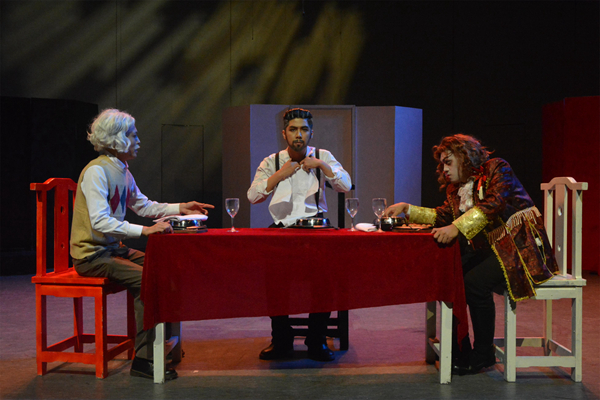 在精心设计的舞台背景及灯光的点缀下,伴随低回的音乐声,演员们一一出场,精彩的表演和一波三折的故事情节,赢得在场观众的阵阵喝彩。演出结束后,领导,专家给予同学们很高的评价。对于只有两年学习表演经历的同学们来说,能齐心协力完成如此一出经典话剧,呈现出来的效果是值得称赞的。
