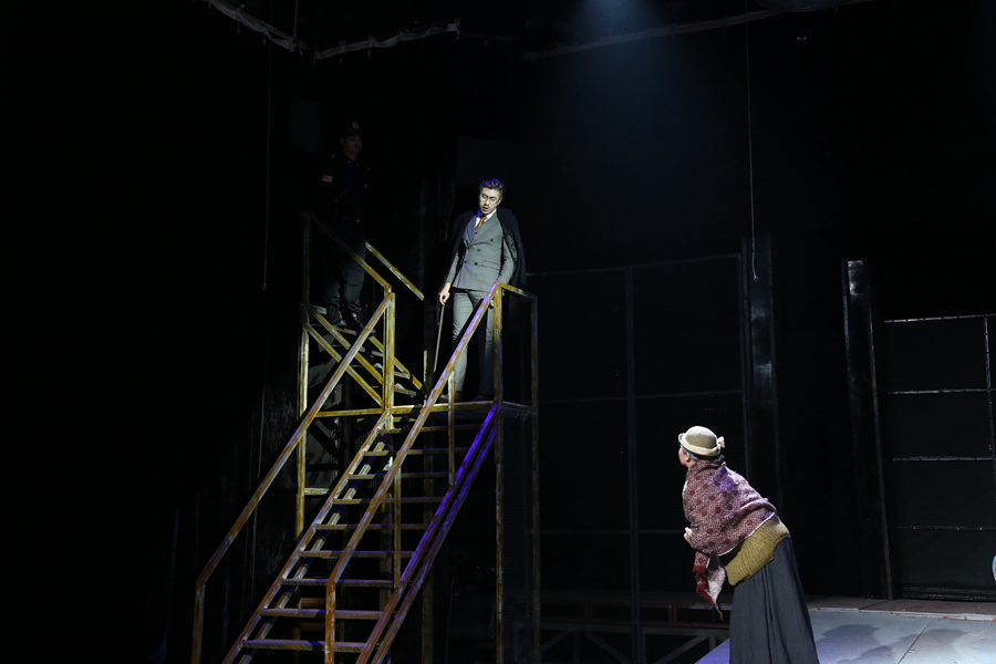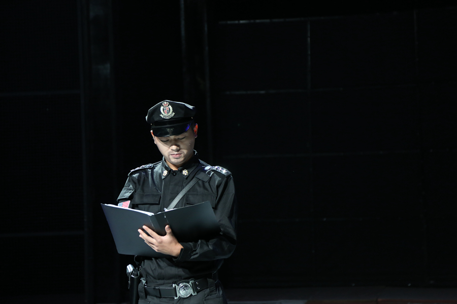 《死前一课》根据诺贝尔文学奖提名人欧内斯特·盖恩斯的小说"A Lesson Before Dying"改编而来,讲述了发生在20世纪40年代的路易斯安那州的一段往事,黑人杰弗逊在一桩酒店枪击事件中阴差阳错地被白人指控蓄意谋杀并判死刑,他的老师用智慧和人格给自甘堕落的杰弗逊上了临刑前的最后一堂课。演出还未开始,演播厅外的走廊已人满为患,大家有序地在门外等候着。舞台上场景道具精细,演员、道具师、灯光师们严阵以待。演出正式开始,伴随着绚丽的灯效和辗转的乐声,舞台上13影视表演2班的同学们向大家展现他们娴熟的演技和细腻的情感,将他们耗时三个多月排练而成的这出大戏演绎得淋漓尽致、高潮迭起,令在场观众如痴如醉。