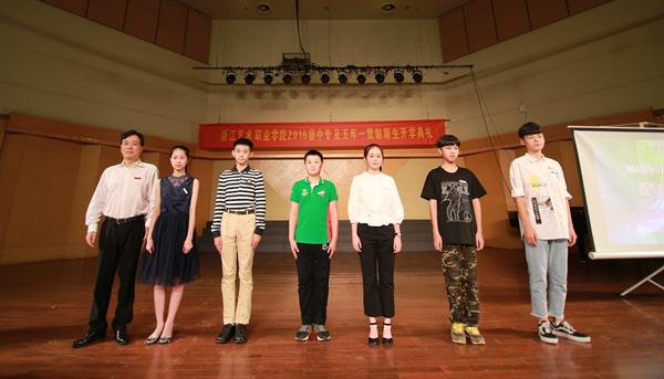 新生代表、2016级舞蹈系五年一贯制班的石尚同学在发言中说到:“浙艺名师荟萃,他们都是浙艺的骄傲,也是我们学习的榜样。浙艺承载着我们的梦想,也寄托着我们对明天的希望。我们要尽快适应新环境,为自己树立明确的目标,一步一个脚印,一步一个台阶,刻苦勤奋,努力学习。” 典礼上还播放了学院60周年校庆宣传片和迎新视频以及各系党总支副书记給同学们的寄语。