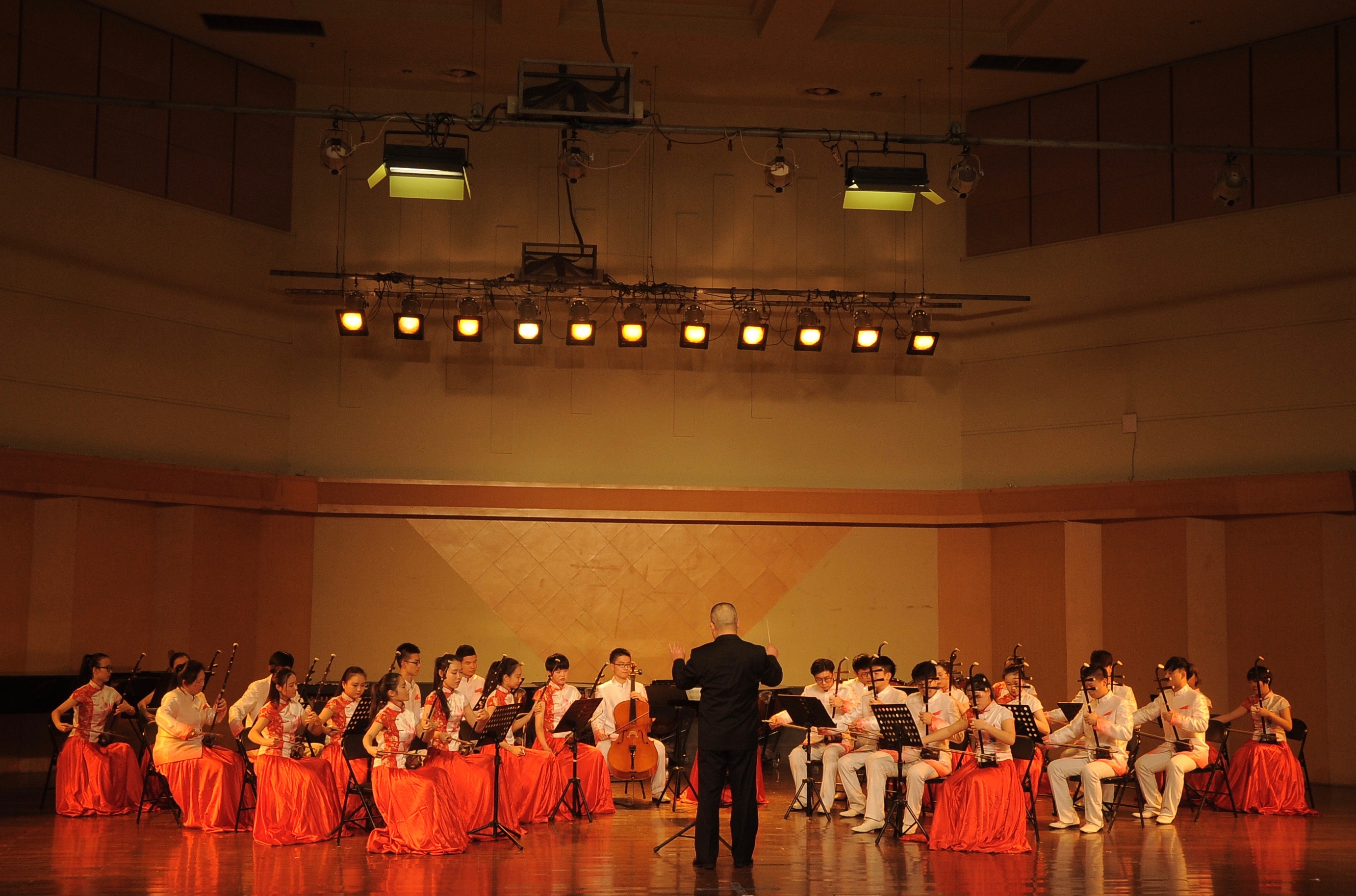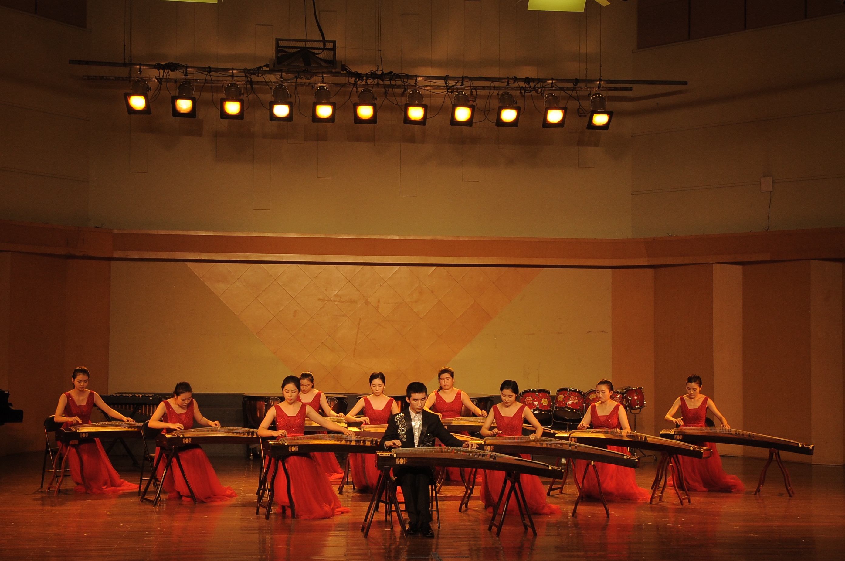 音乐系民族管弦乐团带来的具有浓厚民族特色的开场曲《节日》描绘出云南各民族人民共庆节日的热闹场面,音乐抒情而优美,沸腾而热烈。紧接着的《赶街》用明快优美的旋律和层次清晰的配器,形象地描绘了苍山洱海之间“赶街”的生动画面。扬琴重奏《乡村·善水》取自扬琴重奏曲《乡村抒怀》和《甲午善水》两首作品的精华,曲调优美抒情,抒发了具有乡村音乐风格的人文情怀,描述了浙江省五水共治的场景。该重奏组曾获2016年全国第三届扬琴大赛专业重奏组银奖、第三届国际香港音乐节重奏组一等奖。指跃弦上,音嵌弦中,曾荣获浙江省“新松计划”器乐大赛铜奖的音乐系民乐班赵雨舟同学带来了中阮独奏《中阮第二协奏曲》,此曲的演绎需要运用独特的表现手法将中阮演奏技巧发挥到极致,赵雨舟同学用自己所学带给了我们美的享受。小调悠扬,纤指轻拨,丝弦五重奏《欢乐的夜晚》《跃龙》将中国民族丝弦艺术发挥得淋漓尽致,同时借有西方重奏的技巧特点使得乐曲更具艺术感染力。弓弦乐团带来的《病中吟》将乐曲分为三个乐段和一个尾声,将悲愤激昂之情寓于之中,感染着观众的内心。新苗江南丝竹乐队用丝竹风情演绎了《绿野》,此曲创作1987年,曾获1987年“第一届海内外江南丝竹创作与演奏比赛一等奖”。丝竹的悠扬之音,生动地表现了江南水乡美丽风光以及冬去春来万物更新的景象。