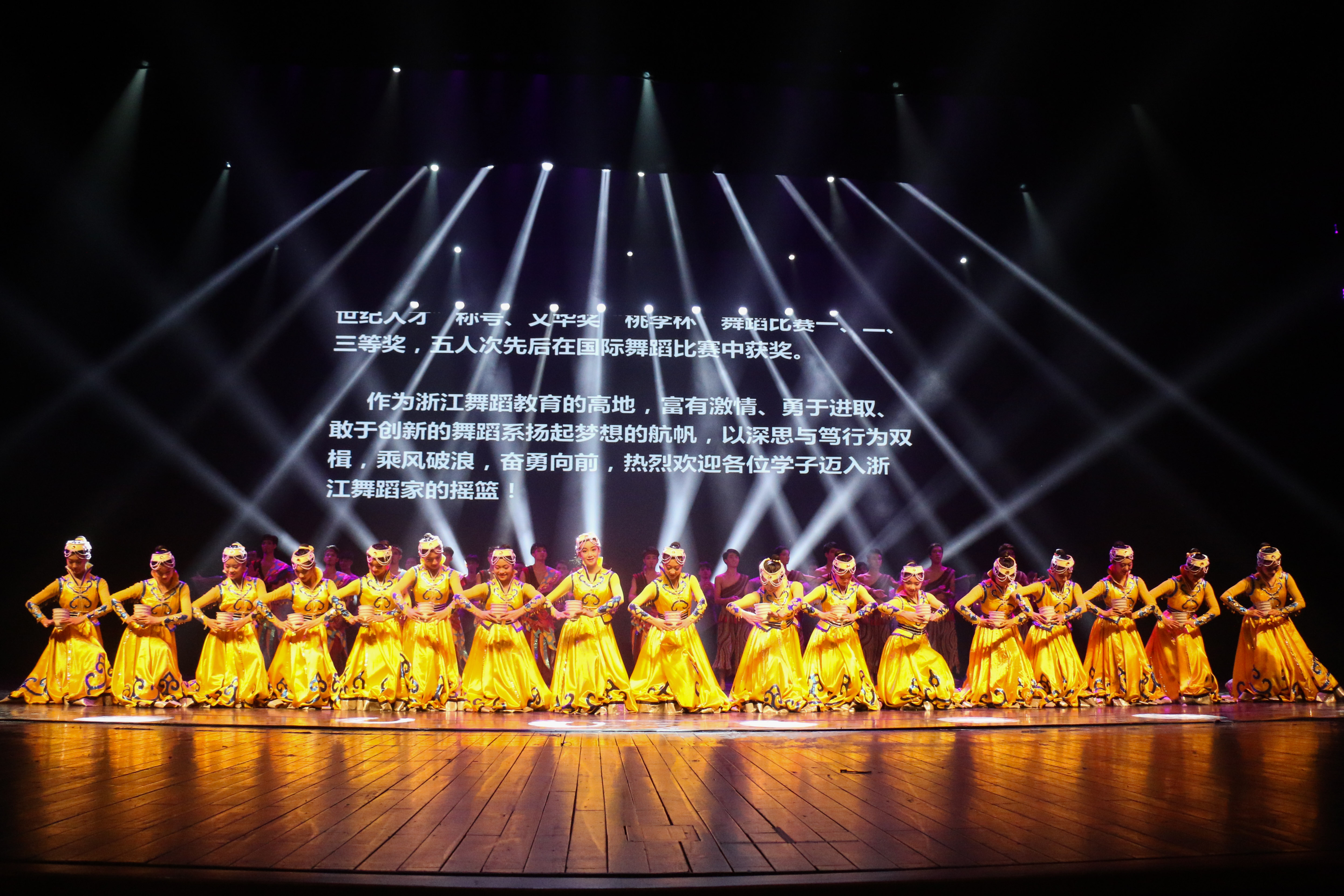 展演通过学习剧目、新苗培养、校企合作、创作剧目四个板块,全面展现了舞蹈系学子们的风采。《 摇篮》:他们最初像婴儿一样,在舞蹈系这个摇篮里茁壮成长,是老师们的精心哺育,帮他们写下美丽的篇章。看!他们稚嫩的笑颜是多么令人难忘。《顶碗》:一群来自舞蹈系14级一贯制班的姑娘们,顶着瓷碗,带着蒙古族特有的热情,伴随着马头琴悠扬的声音,给我们送来了草原的祝福。《吉祥树》:不同于女孩柔情似水的三道弯,傣族汉子带来的,是如跳跃火苗般的三道弯。浓郁的民族风情,充满神秘色彩;古老的东方文明,赐给他们的是刚毅与虔诚,祈祷着来年的吉祥与幸福。《 新苗培养》:寒来暑往,他们像一株株新苗,在这里播种理想,耕耘生活,收获硕果。次次历练,是为了对明天更加坚定向往,是成功路上的风景。《戈壁沙丘》:草原是蒙古汉子最好兄弟,捧着酒壶,在自己最熟悉的地盘上尽情撒野,是一件多么酣畅淋漓的事情!即使是沙漠与戈壁也丝毫不能阻挡他们前行的步伐,家,就内心深处最真正的渴望。《廊桥印象》:柔情的女子与辛勤的男子,男子们倾力打造,女子用自己的温柔来为这幅图画添加美好。国家艺术基金资助项目男子群舞《凳之龙》运用缠、拧、倾、绕的传统古典舞动作精髓,展开对龙之形态的动作设计,而后利用长凳进行龙之骨架的构成与变化,传达出中华民族的“龙之骨气”,蕴意深远。《 鼓舞声花》:江南少女的俏丽与花的绽放在舞蹈里相互结合,用阵阵鼓声与舞动的姑娘来表达出江南的秀美。《雨后梧桐》:撑着油纸伞的女孩,踮着脚尖站在梧桐树下,等待着那个如她般美好的人物出现……《古舞新韵》:绚丽的技巧和古典的韵味相交融,给我们带来了曼妙的舞姿。