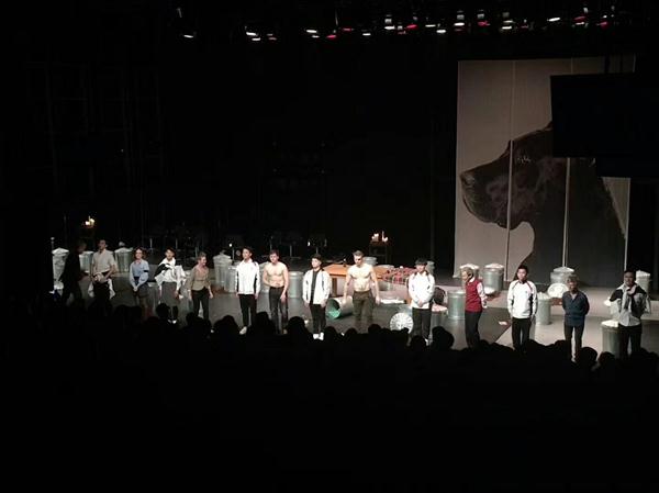 10月21日下午,参演《海选哈姆雷特》七位男生先到乌镇,即刻开始和副导演进行对词和走位的排练。第一次见到爱尔兰剧组,同学们显得十分兴奋。排练结束,导演对同学们竖起大拇指,“hey man”、“good”、“nice”,这样的词汇让同学们倍感鼓舞。期间,乌镇戏剧节年度艺术总监、著名导演田沁鑫特地到现场看望了同学们,让同学们倍感温暖。10月27日晚,特邀剧目《海选哈姆雷特》在网剧场正式演出,剧场内座无虚席。首演大获成功,七位学生演员获得了爱尔兰剧组导演的高度评价和观众的赞扬。兰州大学表演系的老师表示:“同学们的表现很棒!个头、形象、台词全活了!”