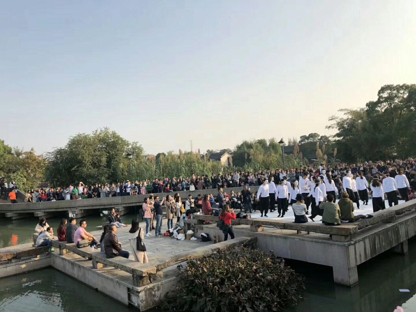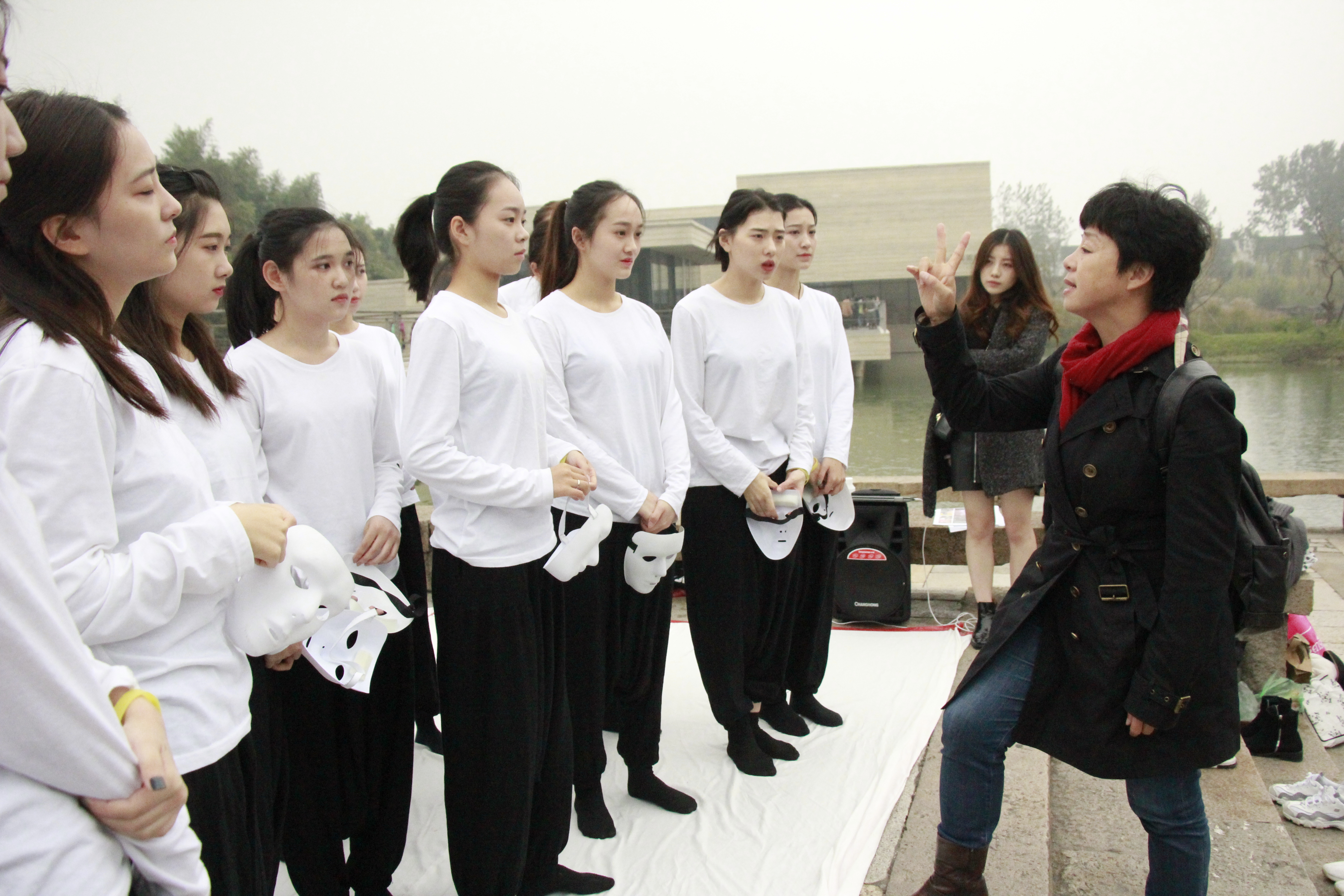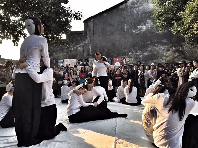 有观众说,很后悔自己在生活中表现出的冷漠,不应该跟爱人、家人吵架,看了演出很有感触,今后要更关注自己的生活,用真诚的心对待周边的人;有的家长带着孩子观看演出,全程给孩子解读情节和内容;还有观众特地询问演员来自哪里,夸同学们的演出非常打动人心,还有外国剧迷给同学们竖起大拇指,观众们的鼓励与肯定让同学们倍受鼓舞。每场演出之后,荆芳给大家进行点评和修改,同学们迅速改正问题、调整状态,使得演出一场比一场娴熟、自如。最后一场的嘉年华演出在木心美术馆的水台上进行,台居水中,三面临湖,仅一桥连通陆地,上百名观众站在周边的桥上、长堤上看完了演出。尽管有些拥挤,但观者、演员都沉醉其中,大家眼中浸着泪水,不觉身在何处。
