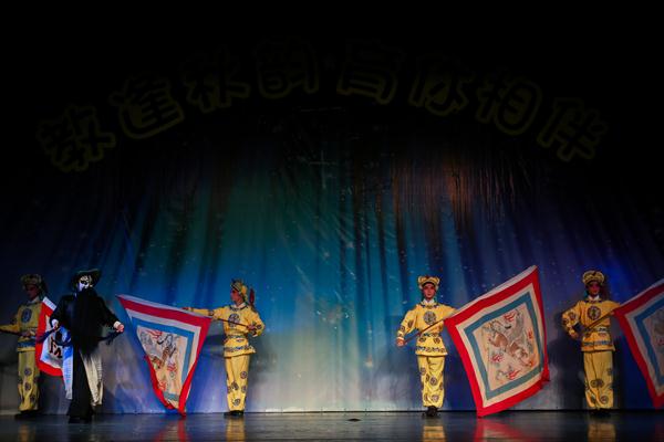 传统短打武生剧目《三岔口》拉开了演出的帷幕。故事讲述宋朝年间,焦赞因杀死谢金吾而被发配到沙门岛,途中住进刘利华店中。任堂惠奉命暗中保护焦赞,也住进此店。夜间,任刘双方发生误会,一场恶战在黑暗中展开,焦赞出面,方解此围。剧情中因为身处黑夜,饰演任刘二人的演员用形象的表演将摸黑搏斗的情态表现了出来,引发了同学们的阵阵笑声。